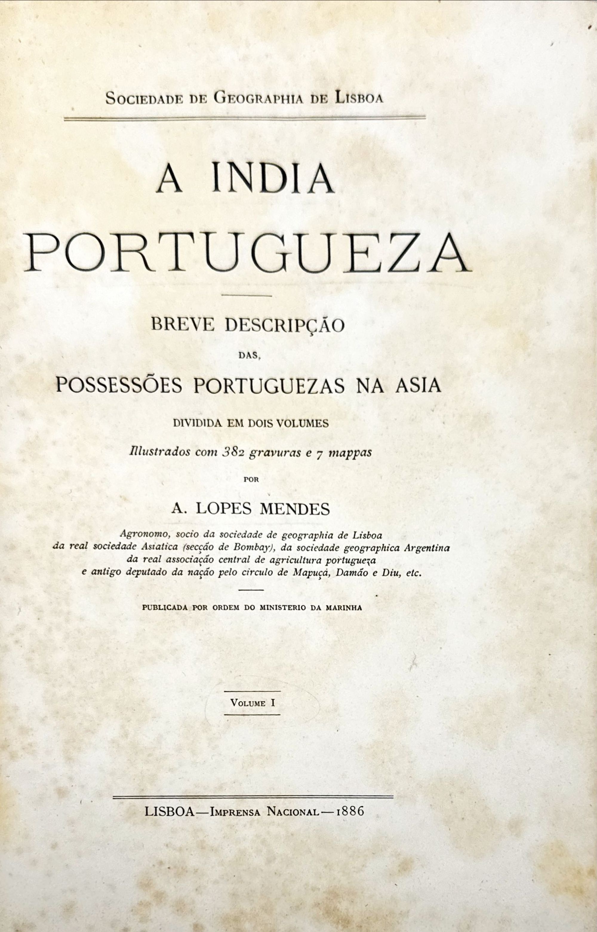 MENDES, A. Lopes. - A INDIA PORTUGUEZA. Breve descripção da Possessões Portuguezas na Asia. Volume I (e II).