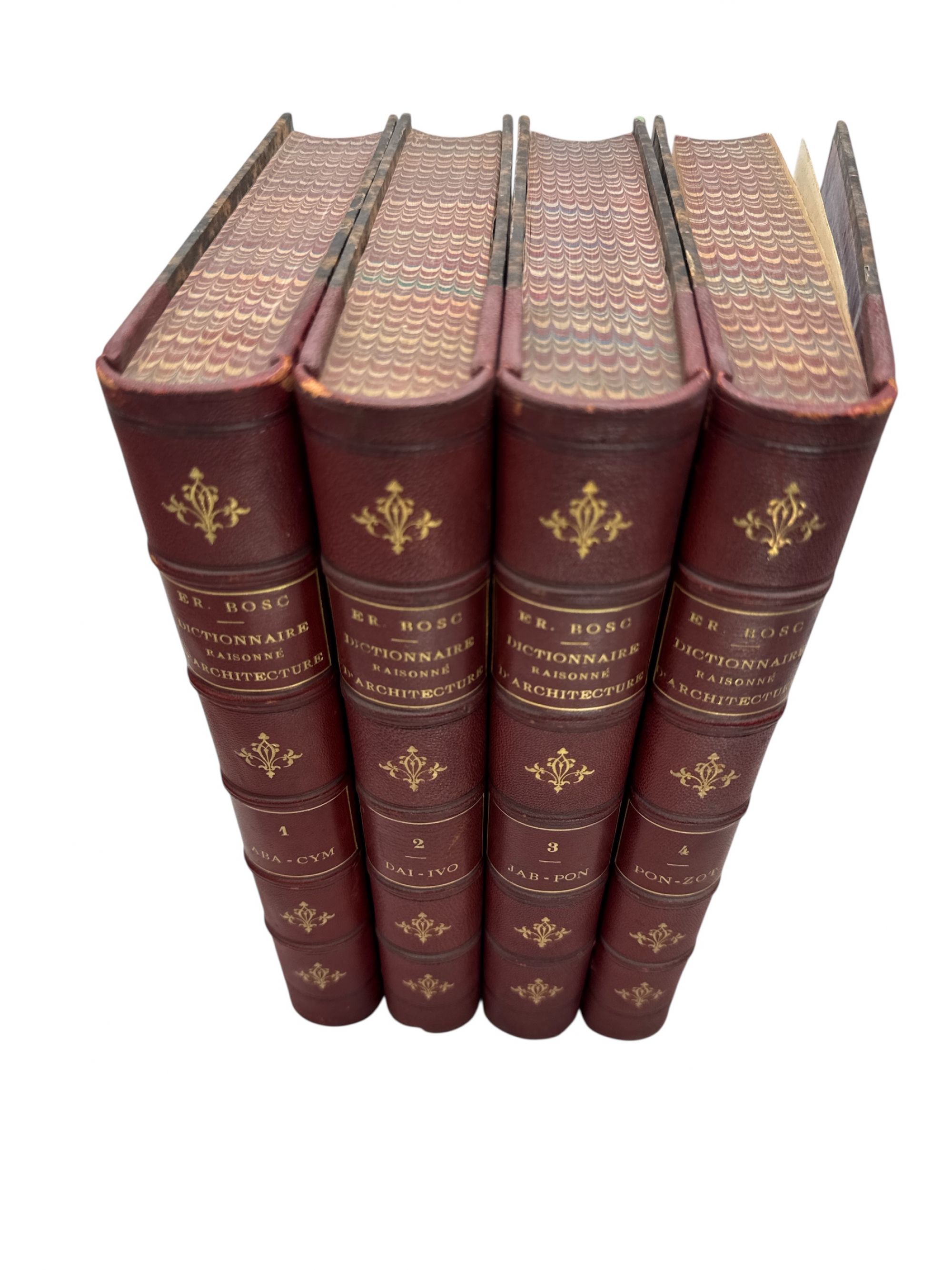 BOSC, Ernest. - DICTIONNAIRE RAISONNÉ D'ARCHITECTURE ET DES SCIENCES ET ARTS QUI S'Y RATTACHENT. Tomo I (ao IV). Paris. Librairie Firmin-Didot. 1877 (a 1880). 4 vols. In-4º. Encs.