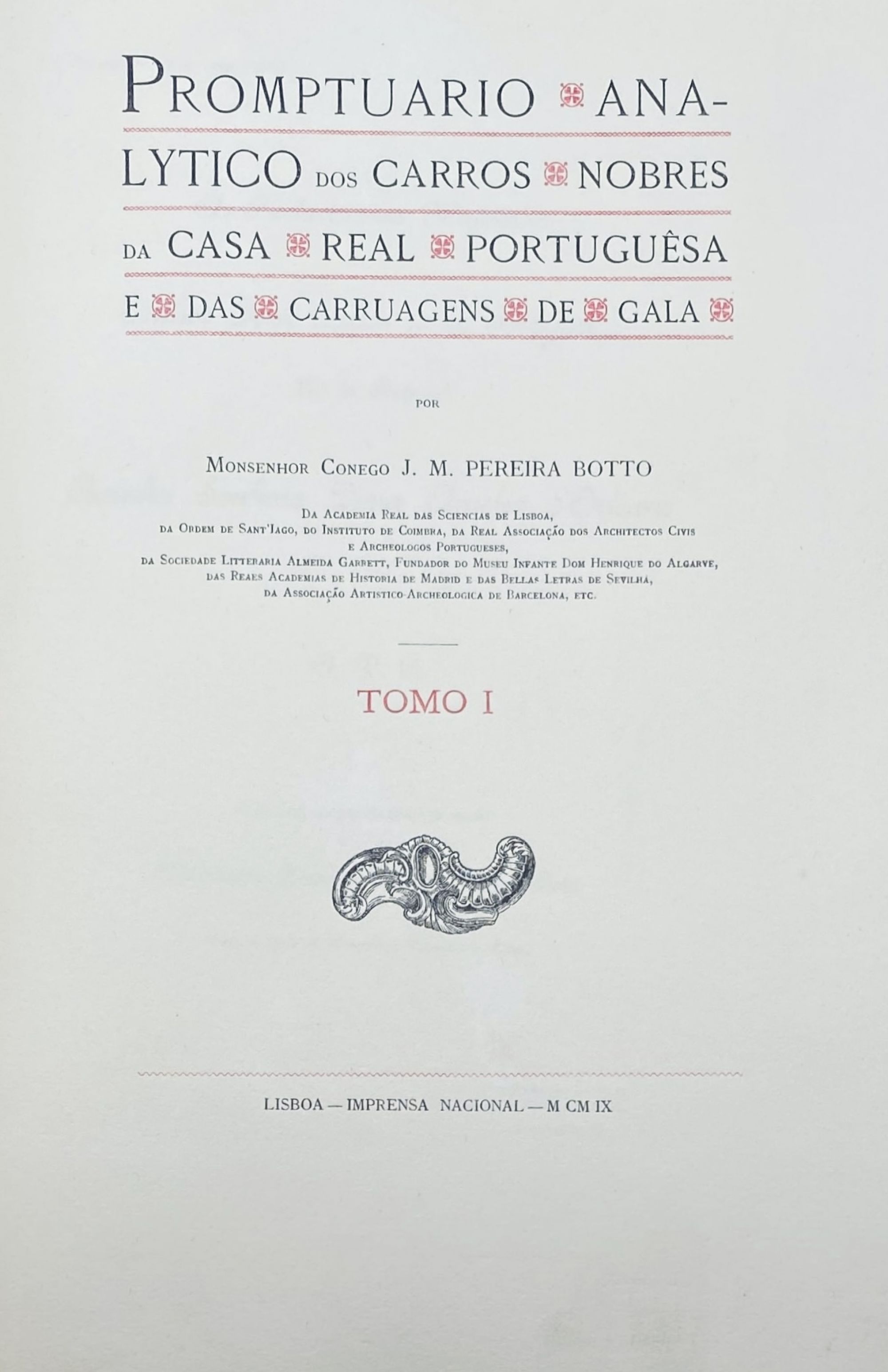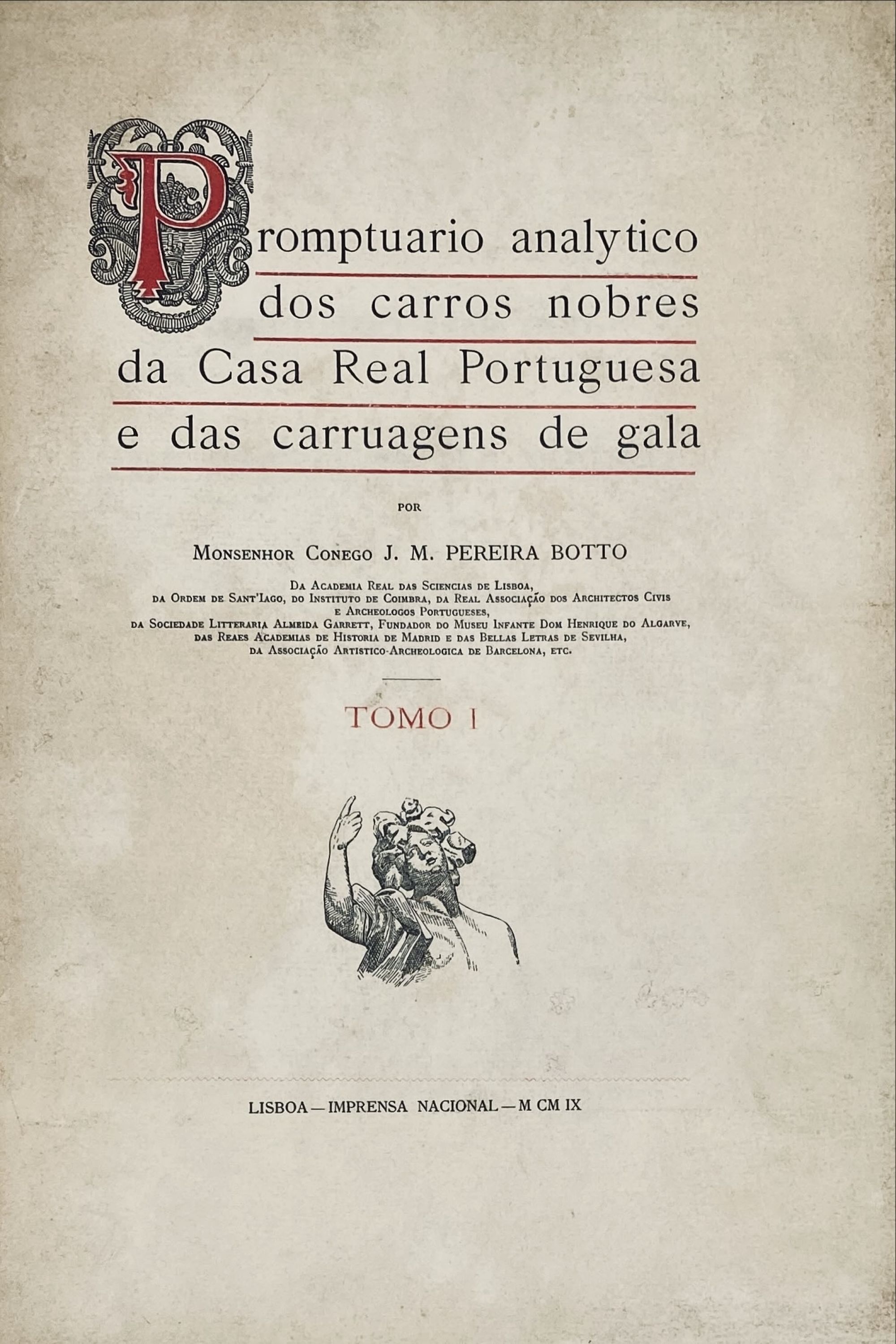 BOTTO, Monsenhor J.M. Pereira. - PROMPTUARIO ANALYTICO DOS CARROS NOBRES DA CASA REAL PORTUGUESA E DAS CARRUAGENS DE GALA. Tomo I.