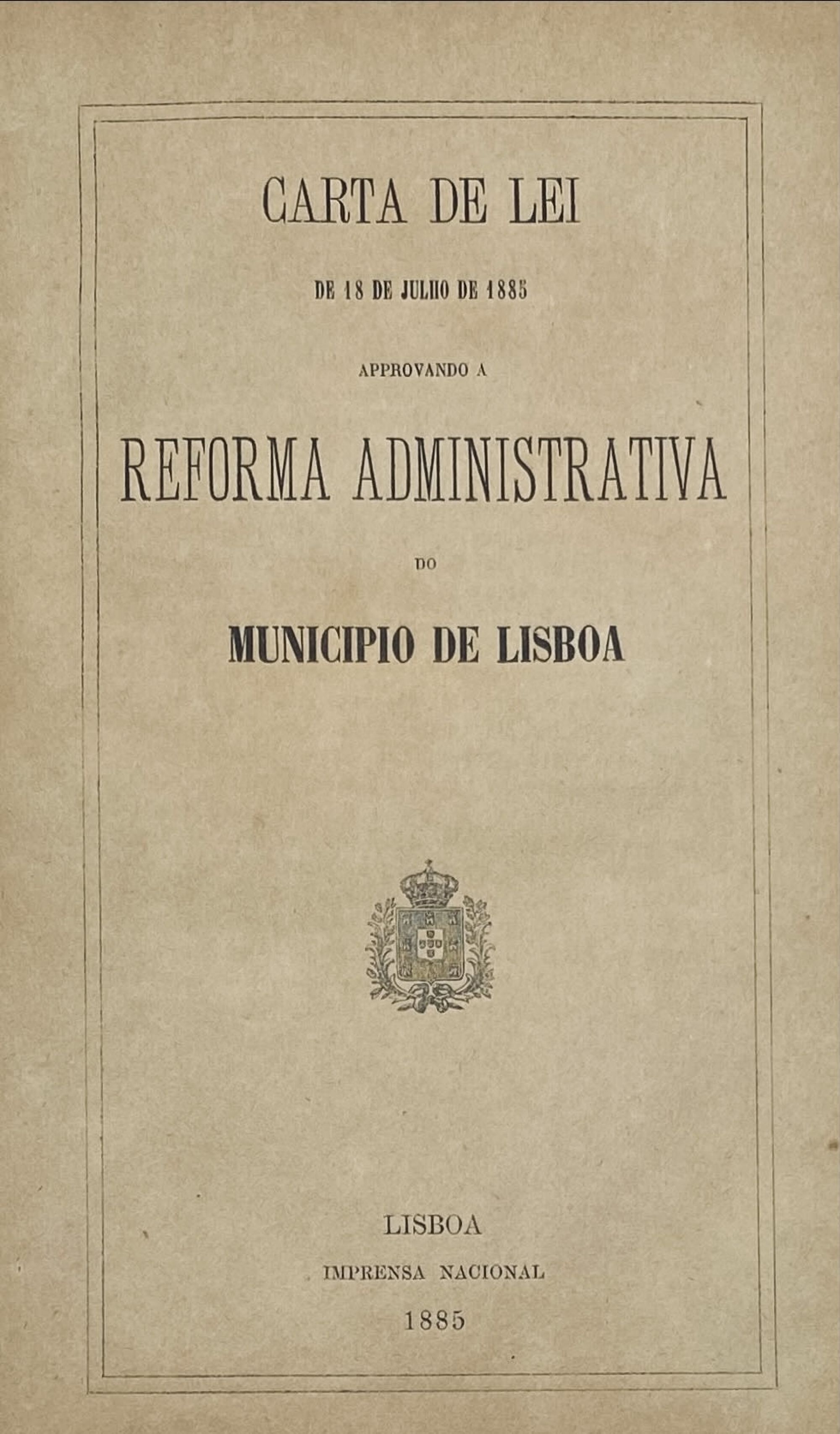 CARTA DE LEI de 18 de julho de 1885 aprovando a reforma administrativa do município de Lisboa.