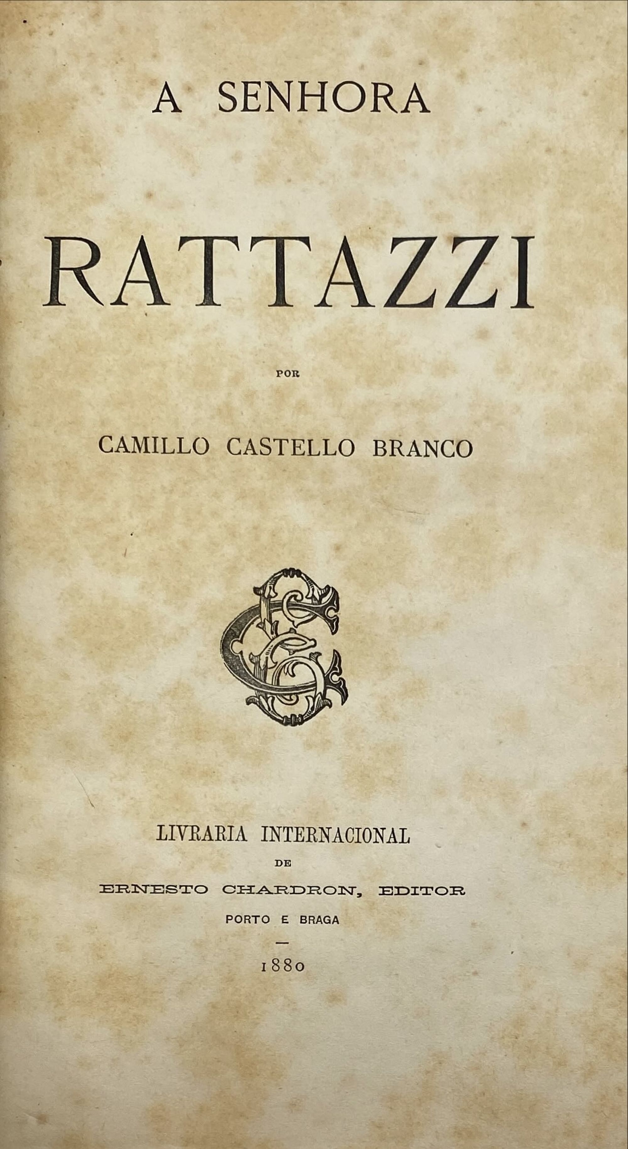 A SENHORA RATTAZZI. Porto e Braga. Livraria Internacional de Ernesto Chardron, Editor. 1880. In-8º de 30, [1] págs.