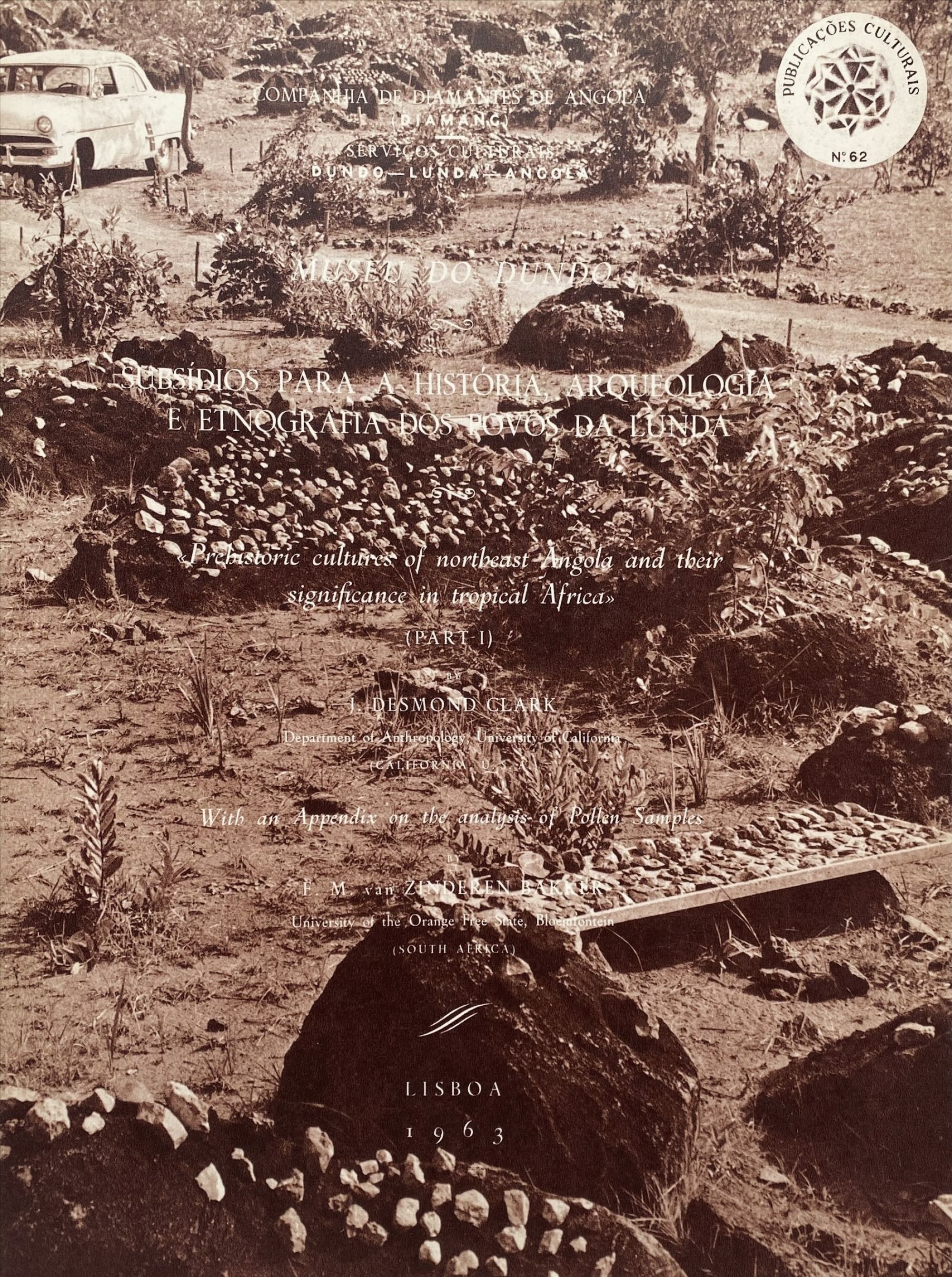 Diamang - CLARK, J. Desmond. - "PRE-HISTORICAL CULTURES OF NORTHEAST ANGOLA AND THEIR SIGNIFICANCE IN TROPICAL AFRICA". Wuthe an Appendix on the analyses of Pollen Samples, by E. M. van Zinderen Bakker. Parte I (e Parte II).