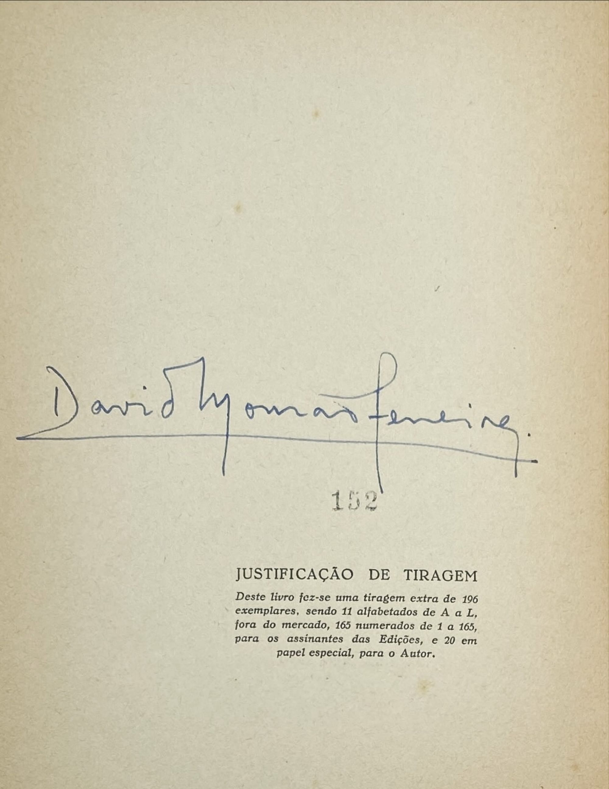 Primeira edição. Tiragem extra de 196 exemplares destinada aos assinantes, numerada e assinada pelo autor. Capa de António Vaz Pereira.