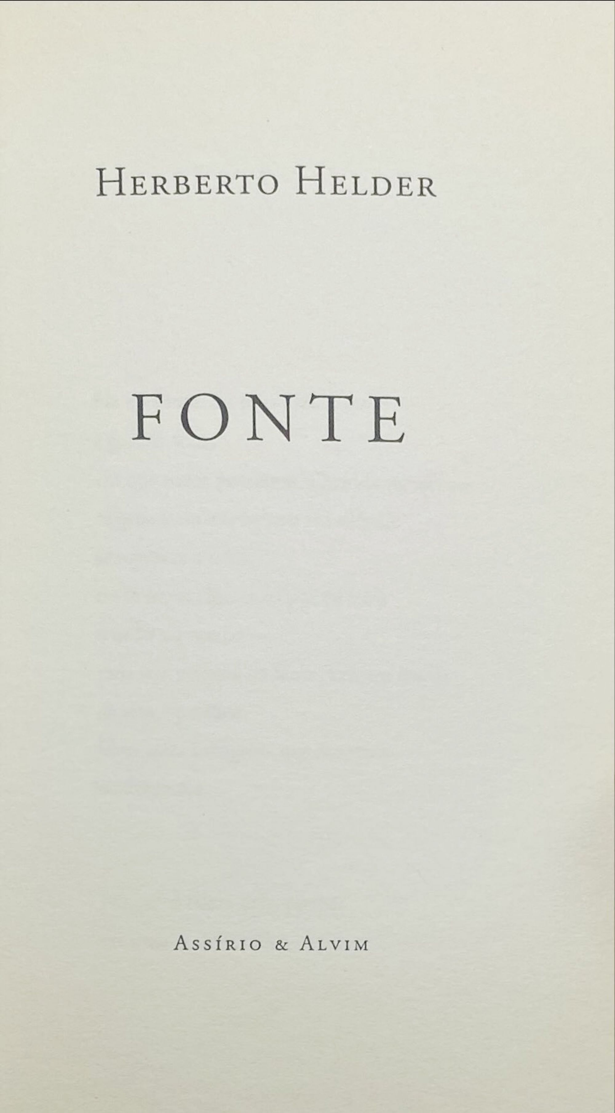 HELDER, Herberto. - FONTE. Lisboa. Assírio & Alvim. 1998. In-8º de 30, [1] págs. Br.