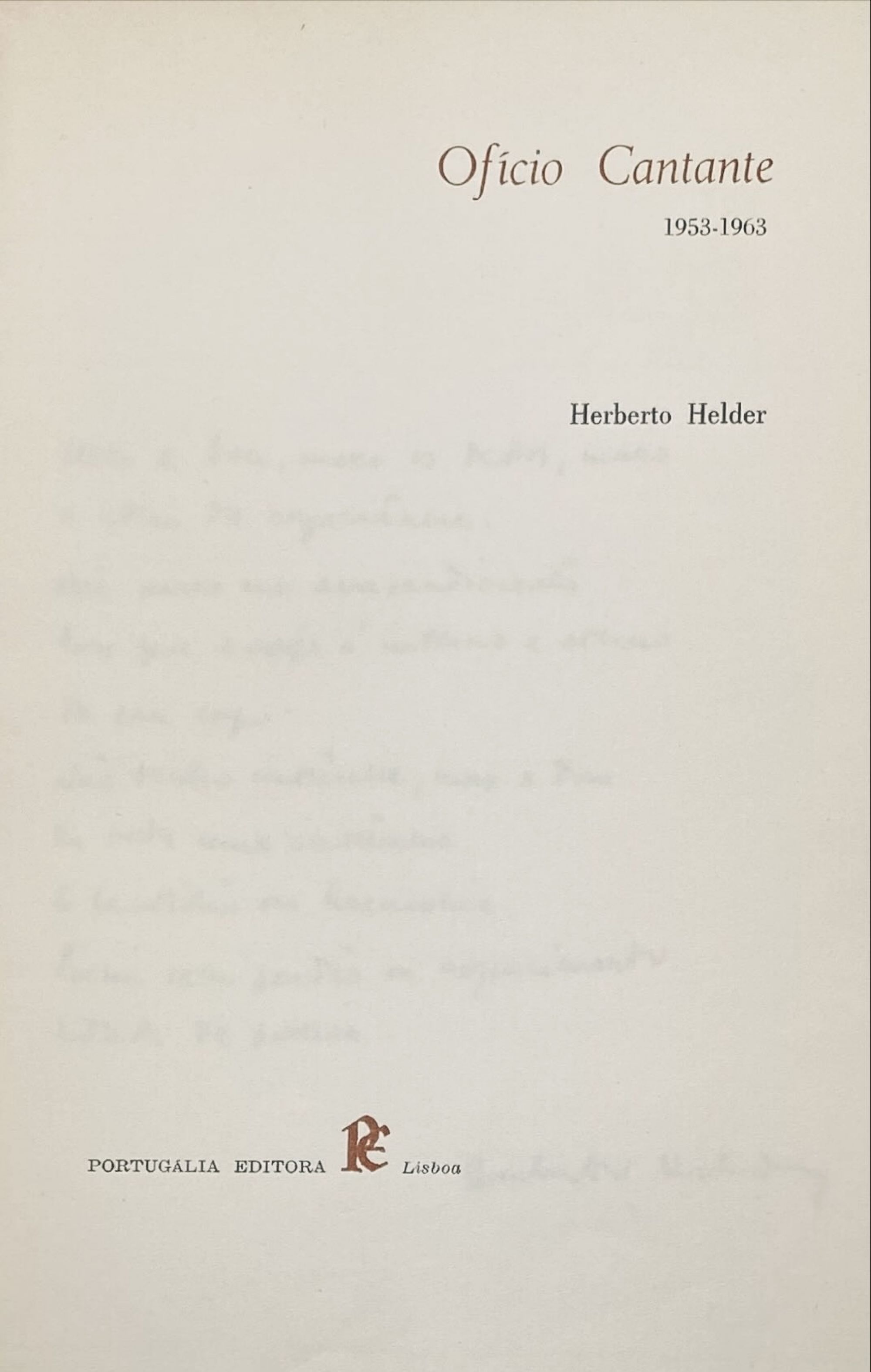 HELDER, Herberto. - OFICIO CANTANTE. 1953-1963. Lisboa. Portugália Editora. 1967. In-8º de 258, [1] págs. Br.