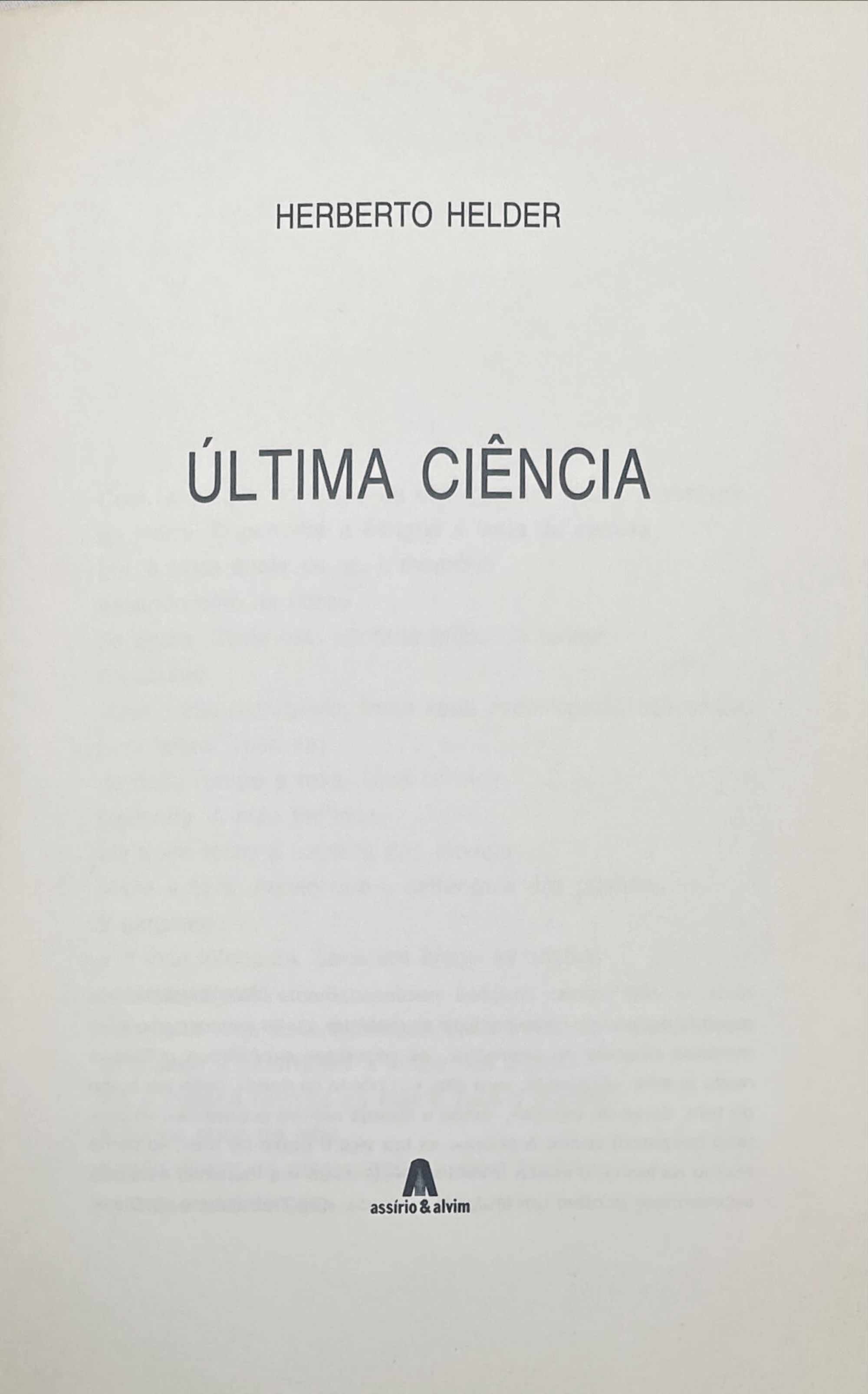 HELDER, Herberto. - ÚLTIMA CIÊNCIA. Lisboa. Assirio & Alvim. 1988. In-8º de 44, [1] págs. Br.