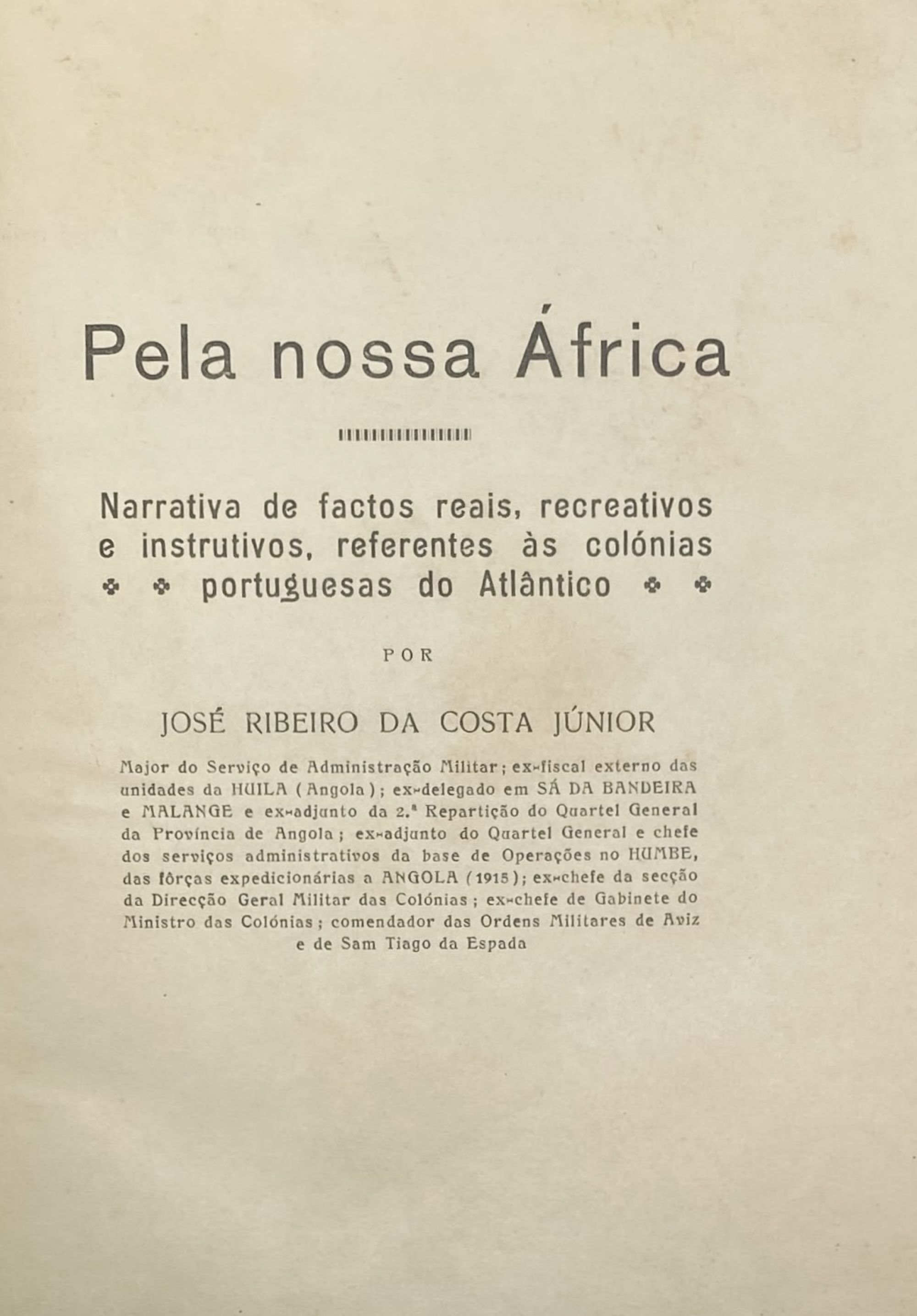 JÚNIOR, José Ribeiro da Costa. - PELA NOSSA AFRICA. Narrativa de factos reais, recreativos e instrutivos, referentes às colónias portuguesas do atlântico.