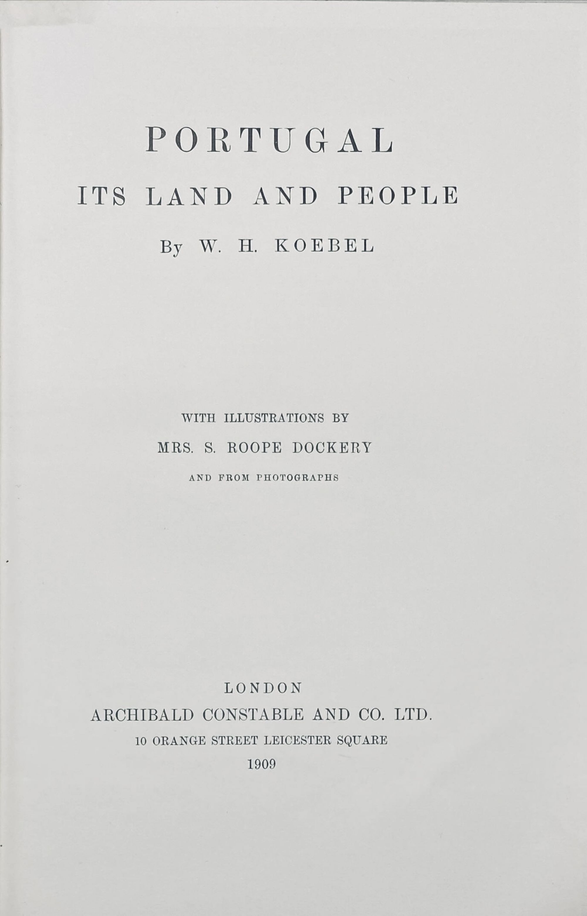 KOEBEL, W. H. - PORTUGAL, ITS LAND AND PEOPLE. Illustrated by S. Roope. London. Archibald Constable and Co. Ltd. 1909. In-4º de XVII, 405 págs. Enc.