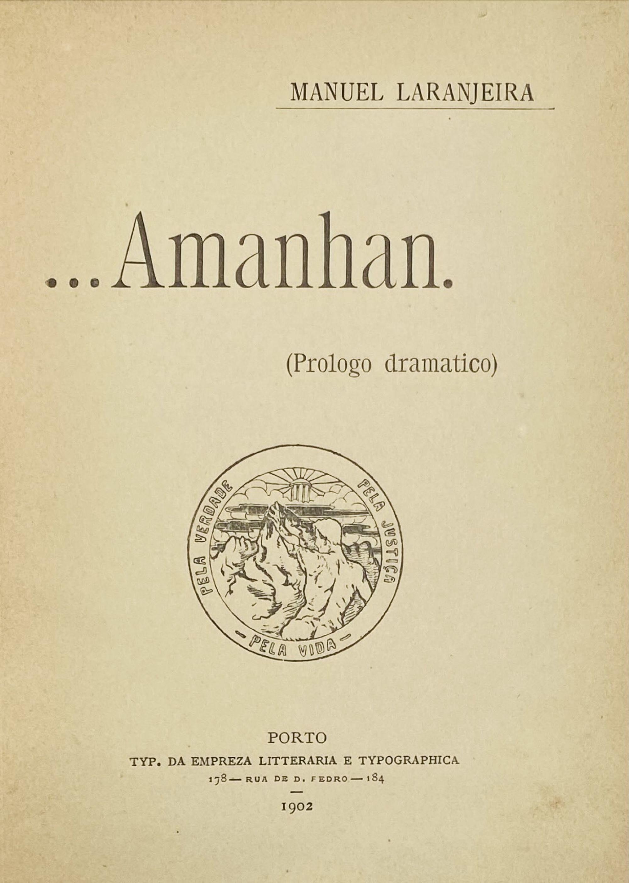 LARANJEIRA, Manuel. - ...AMANHÃ. (Prologo dramatico). Porto. Typ. da Empreza Litteraria e Typographica. 1902. In-8º de 127, [1] págs. Br.