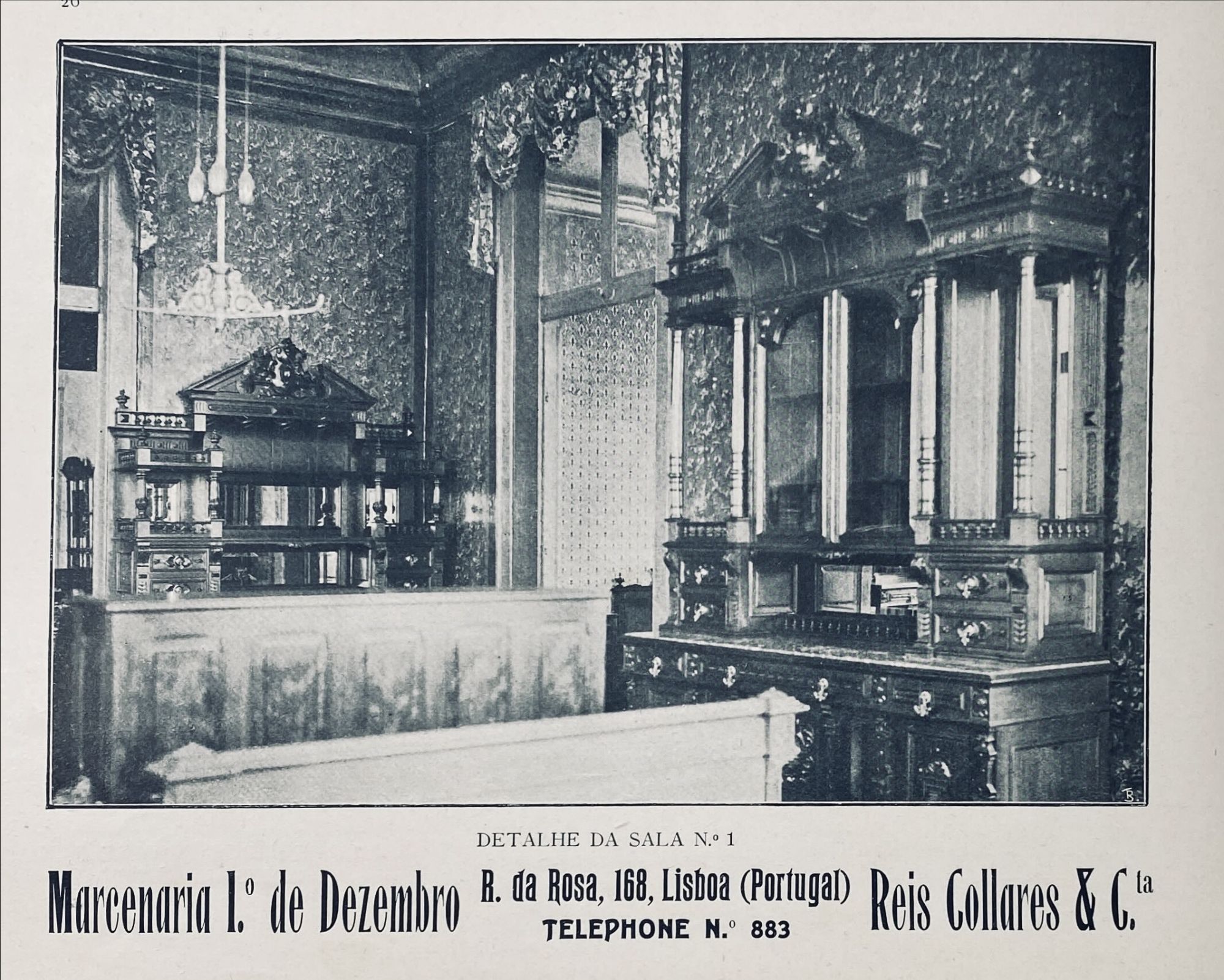 Belo álbum com 42 fotografias de J. Barreira, Thomaz Bordallo, Benoliel, A. Novaes. Dedicatória de oferta de Silva Soares para a carpintaria Mechanica Portugueza que possui uma fotografia no álbum. Encadernação editorial em tela.