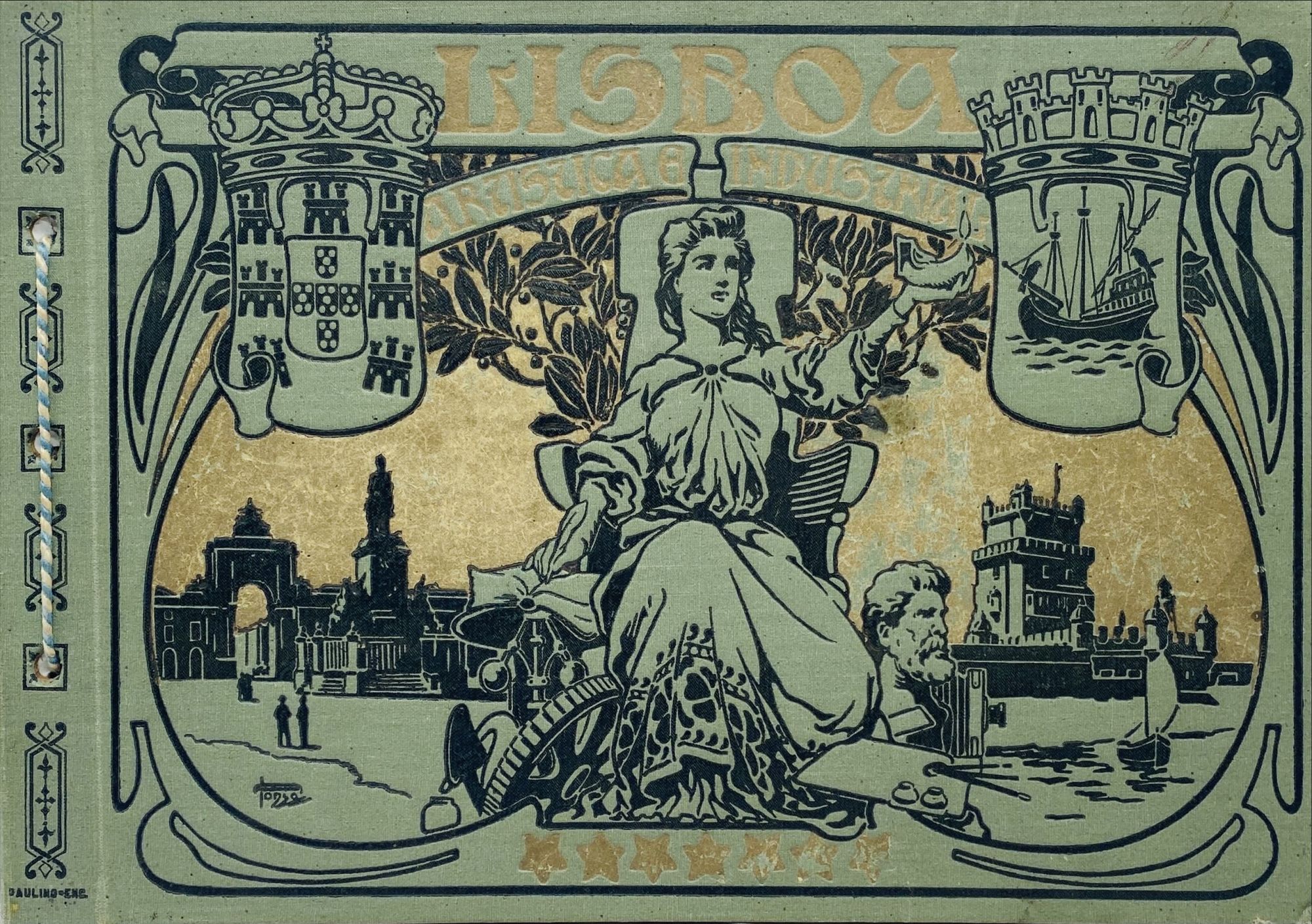 LISBOA ARTISTICA E INDUSTRIAL. Luxuoso album de photographias com um resumo historico da cidade. Lisboa. Typ. da Empreza da Historia de Portugal. 1908. In-8 oblongo de 48 págs. Enc.