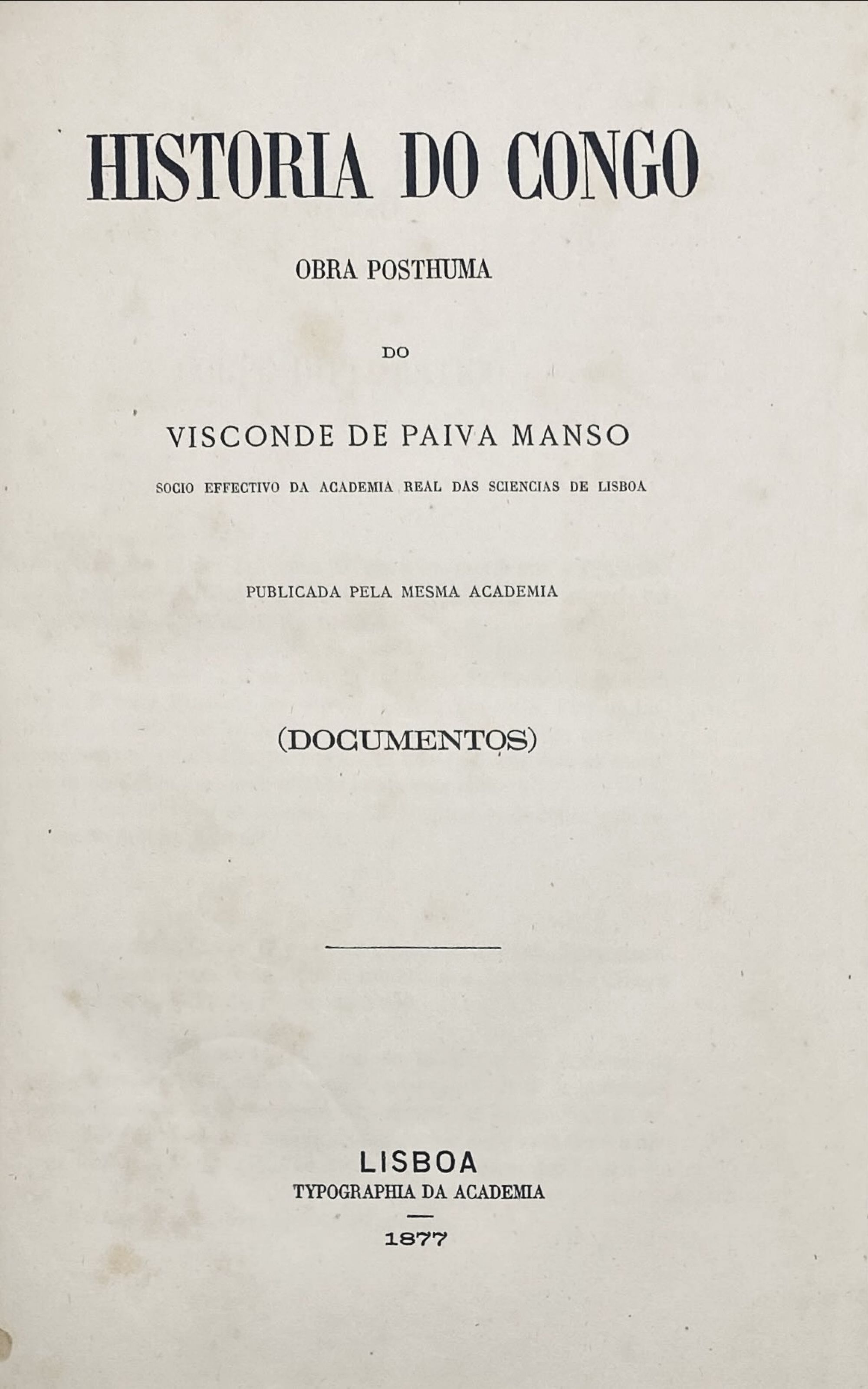 MANSO, Visconde de Paiva. - HISTORIA DO CONGO. Obra Posthuma do... (Documentos).