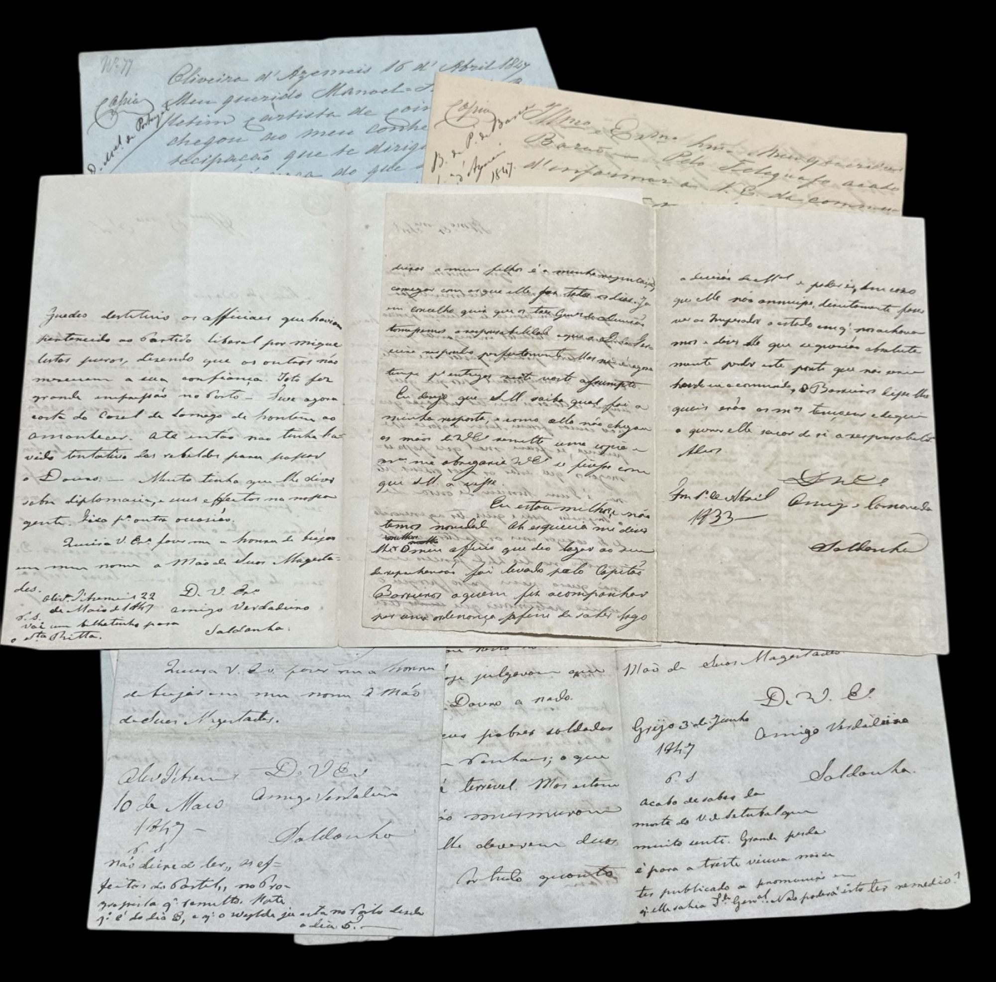 Juntamos 1 carta de 1833, 2 copias de cartas de oliveira de Ameis de 1847 e um rascunho