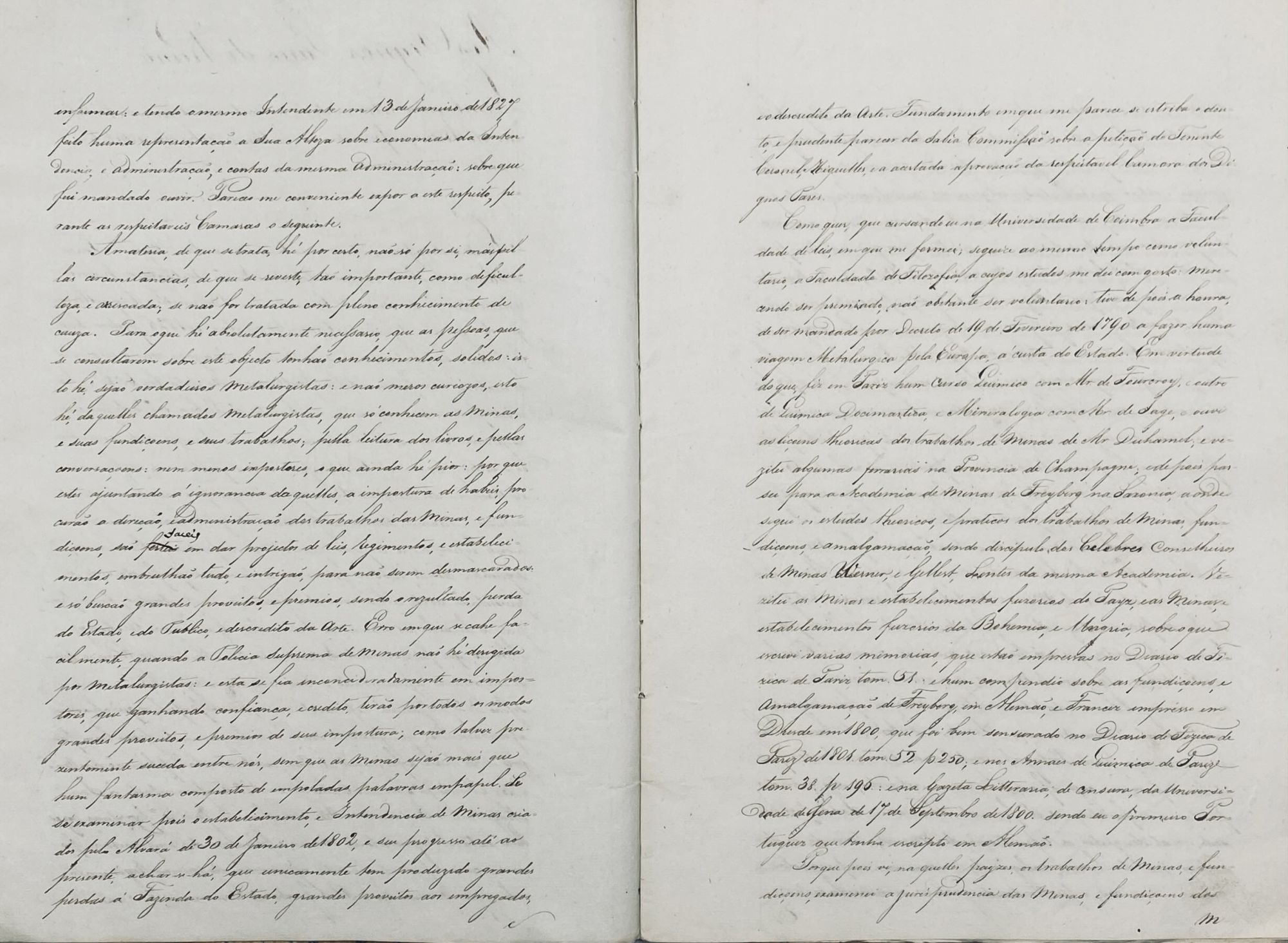 Manuscrito - LEMBRANÇA SOBRE O ESTADO ACTUAL DAS MINAS E METALICAS do Reino, e providencias a tomar sobre seu restabelecimento. Por Joaquim Pedro Fragoso da Mota Siqueira.