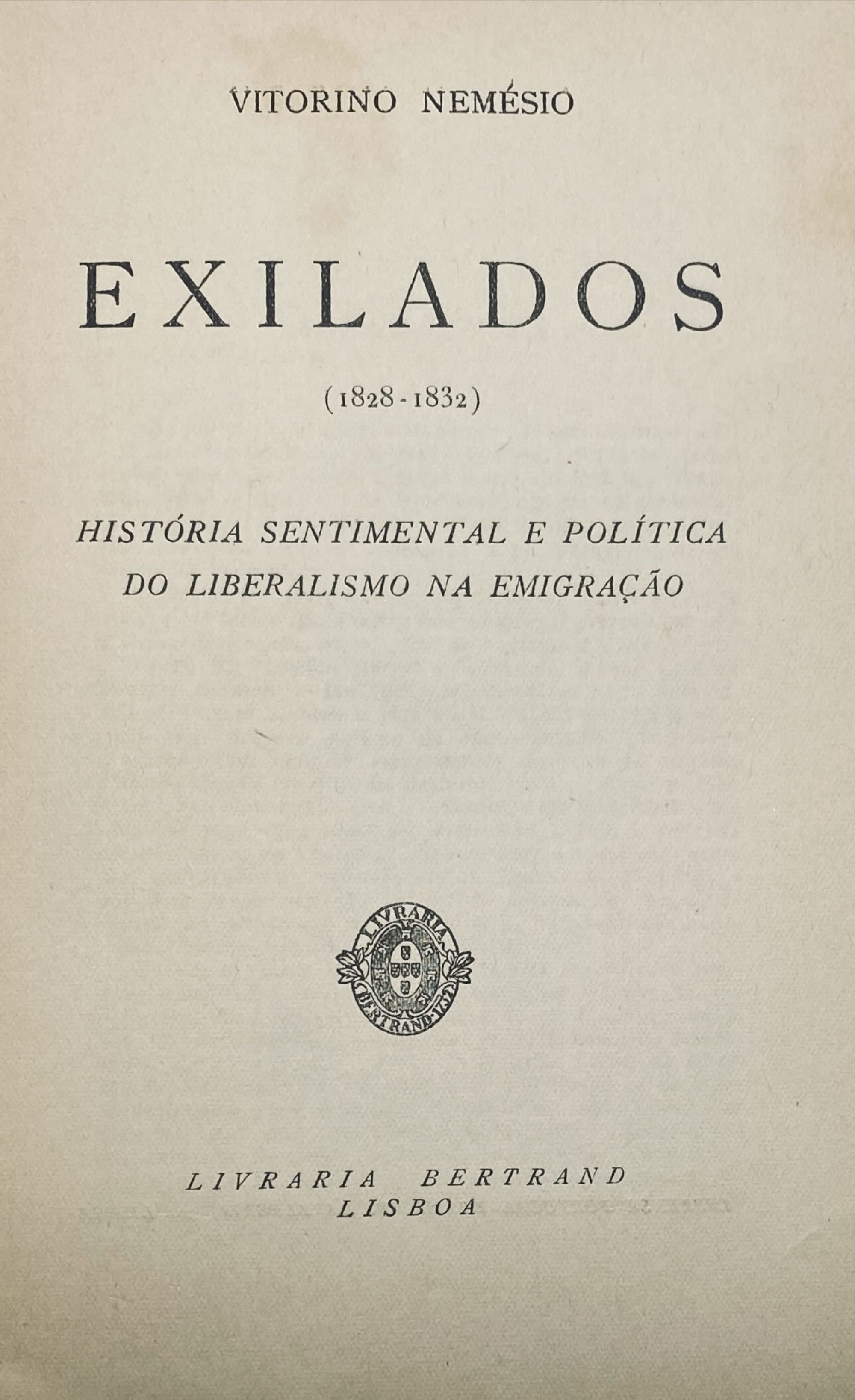 NEMÉSIO, Vitorino. - EXILADOS. 1828-1832. História sentimental e politica do liberalismo na emigração. Lisboa. Livraria Bertrand. S. data. 8º de [8], 322, [2] págs. Br.