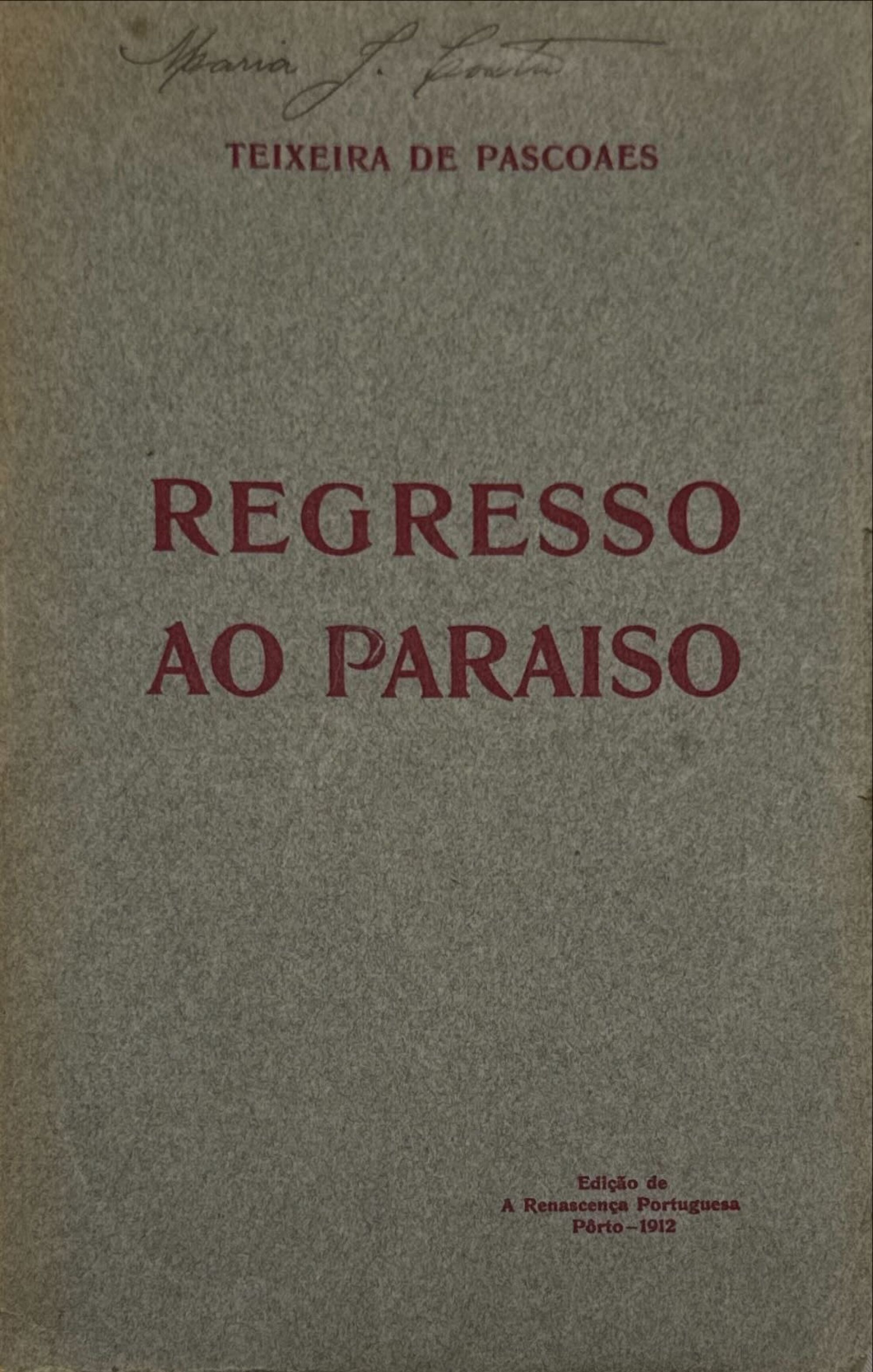 PASCOAES, Teixeira de. - REGRESSO AO PARAISO. Porto. Edição da Renascença Portuguesa. 1912. In-8º de 218, [2] págs. Br.