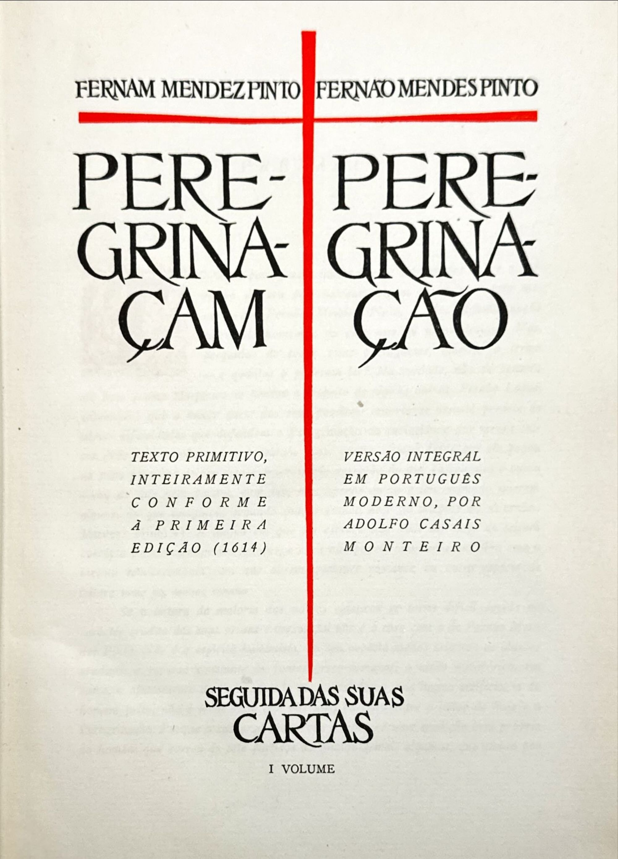 PINTO, Fernão Mendes. - PEREGRINAÇÃO. Texto primitivo, inteiramente conforme a primeira edição (1614). Versão integral em Português moderno, por Adolfo Casais Monteiro; seguido das suas cartas. Tomo I (e II).