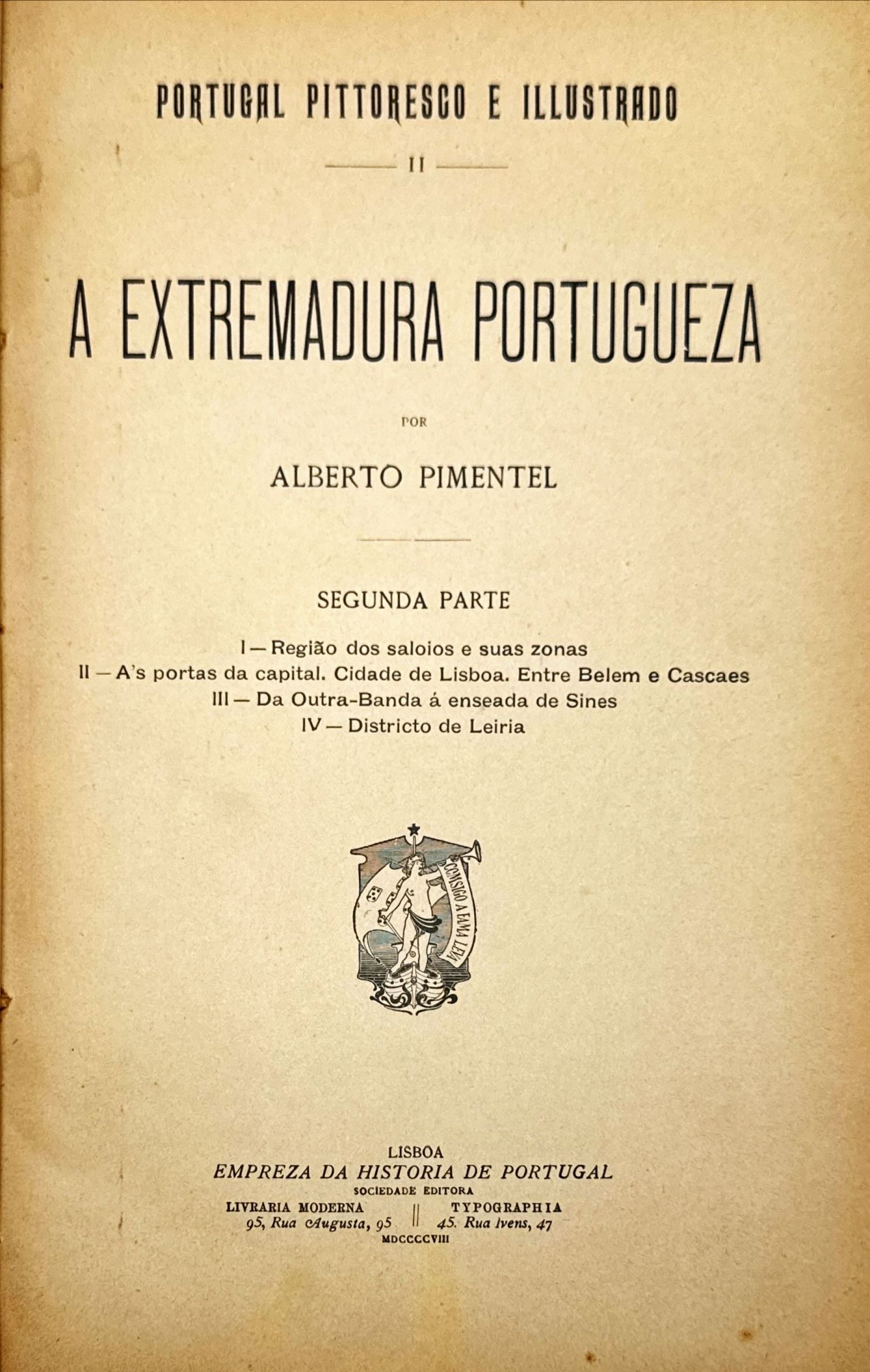 PORTUGAL PITTORESCO E ILLUSTRADO. I - LISBOA. Compilação e Estudo por Alfredo Mesquita. Com quatrocentas gravuras. II - EXTREMADURA PORTUGUEZA, por Alberto Pimentel. Primeira Parte O Ribatejo e Segunda Parte - I - Região dos Saloios e suas zonas. II - Ás portas da Capital. Cidade de Lisboa. Entre Belem e Cascaes. III - Da Outra-Banda á enseada de Sines. IV - Districto de Leiria. Lisboa. Empreza da Historia de Portugal. 1903 (a 1908). 3 Vols. In-4º Encs.