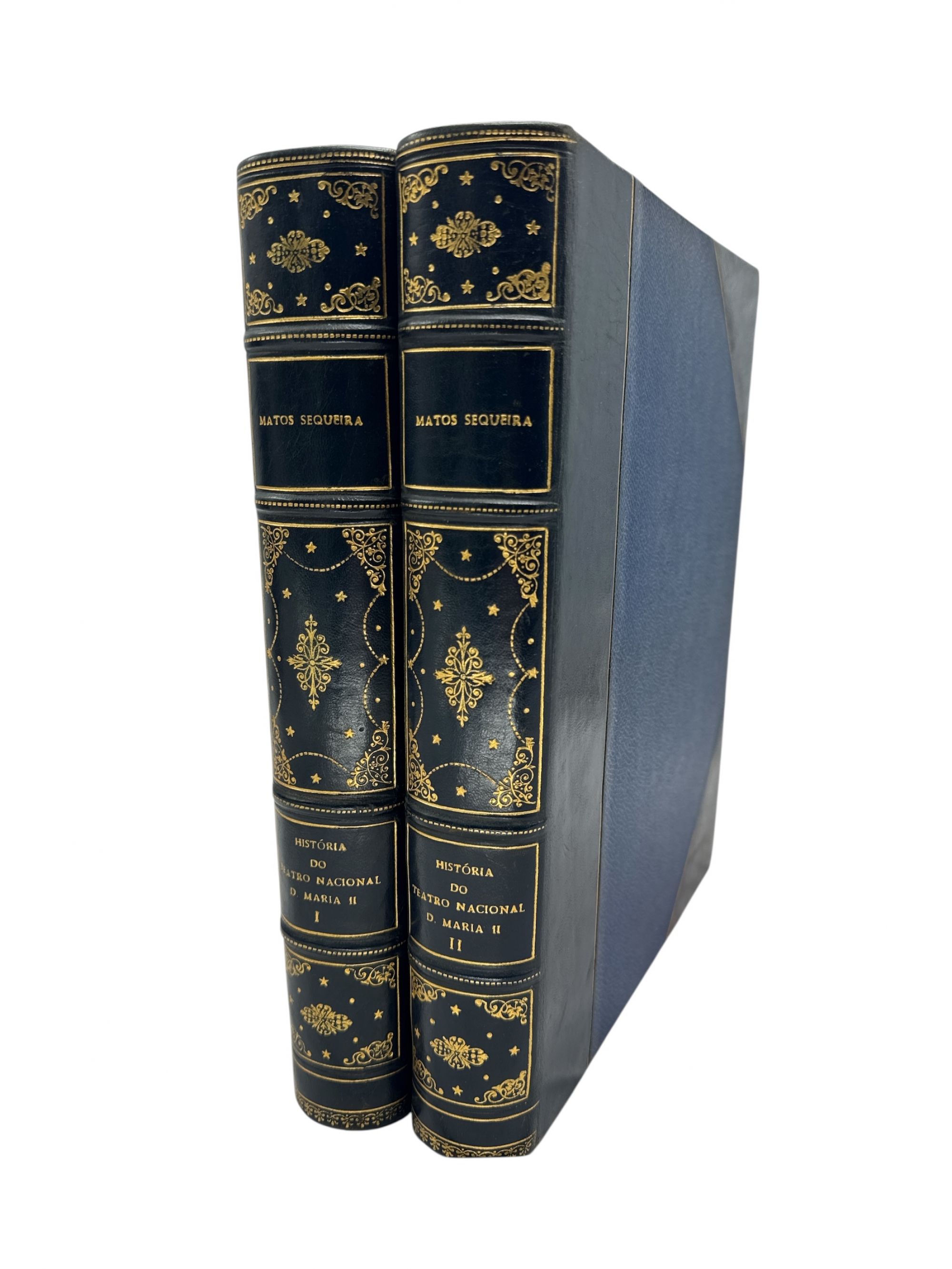 Das mais completas biografias do Teatro D. Maria II. Edição Comemorativa do Centenário. 1846-1946. Profusamente ilustrada no texto e extra-texto. Revestidos de boas encadernações meias de pele. Conservam as capas de brochura.