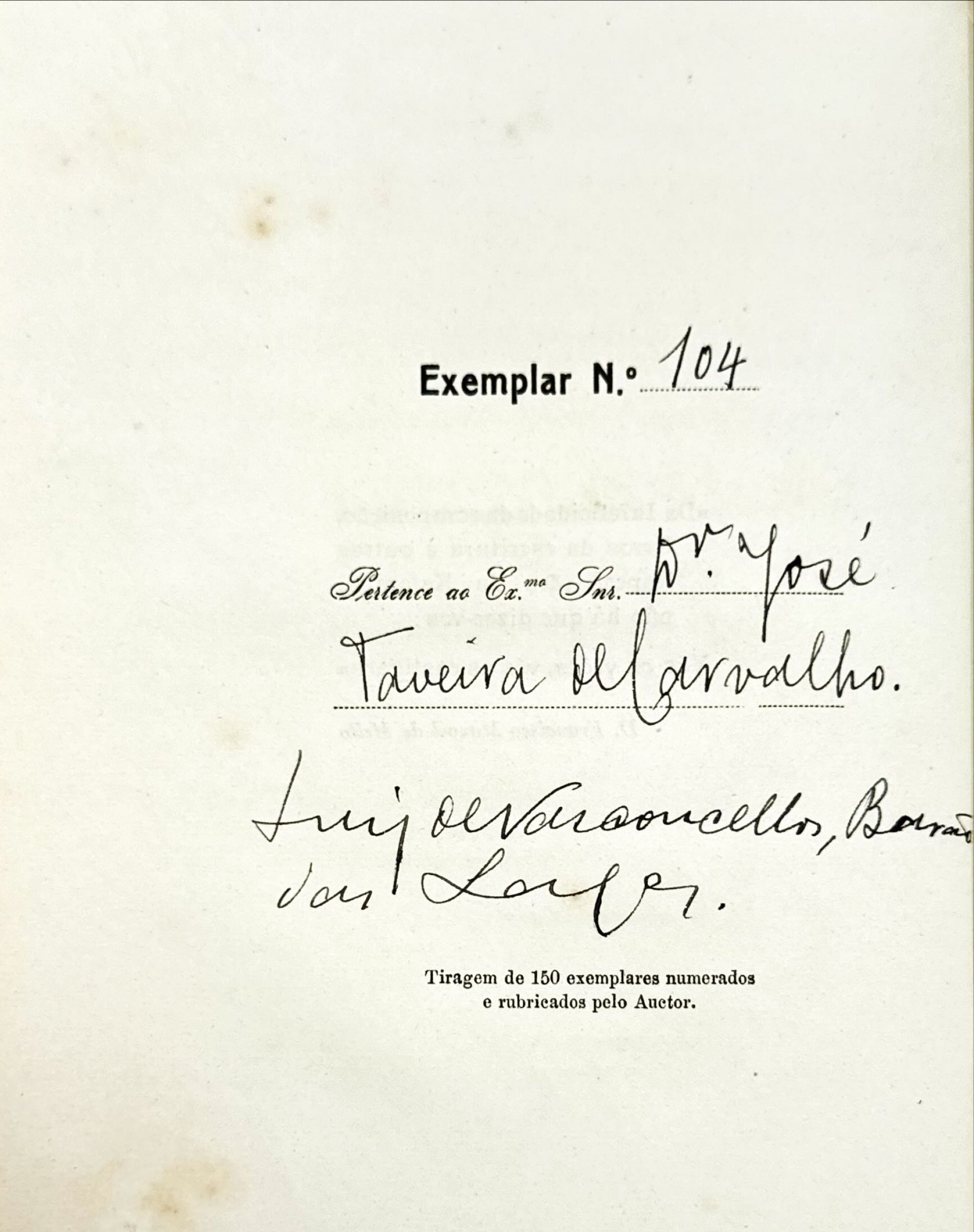 Rara tiragem de apenas 150 exemplares numerados e assinados pelo autor, com o nome do proprietário. Encadernação meia de pele, com capas.