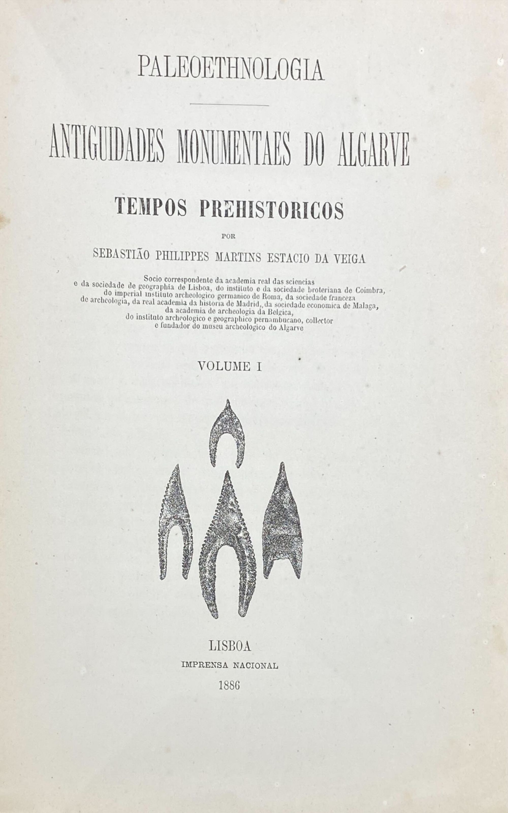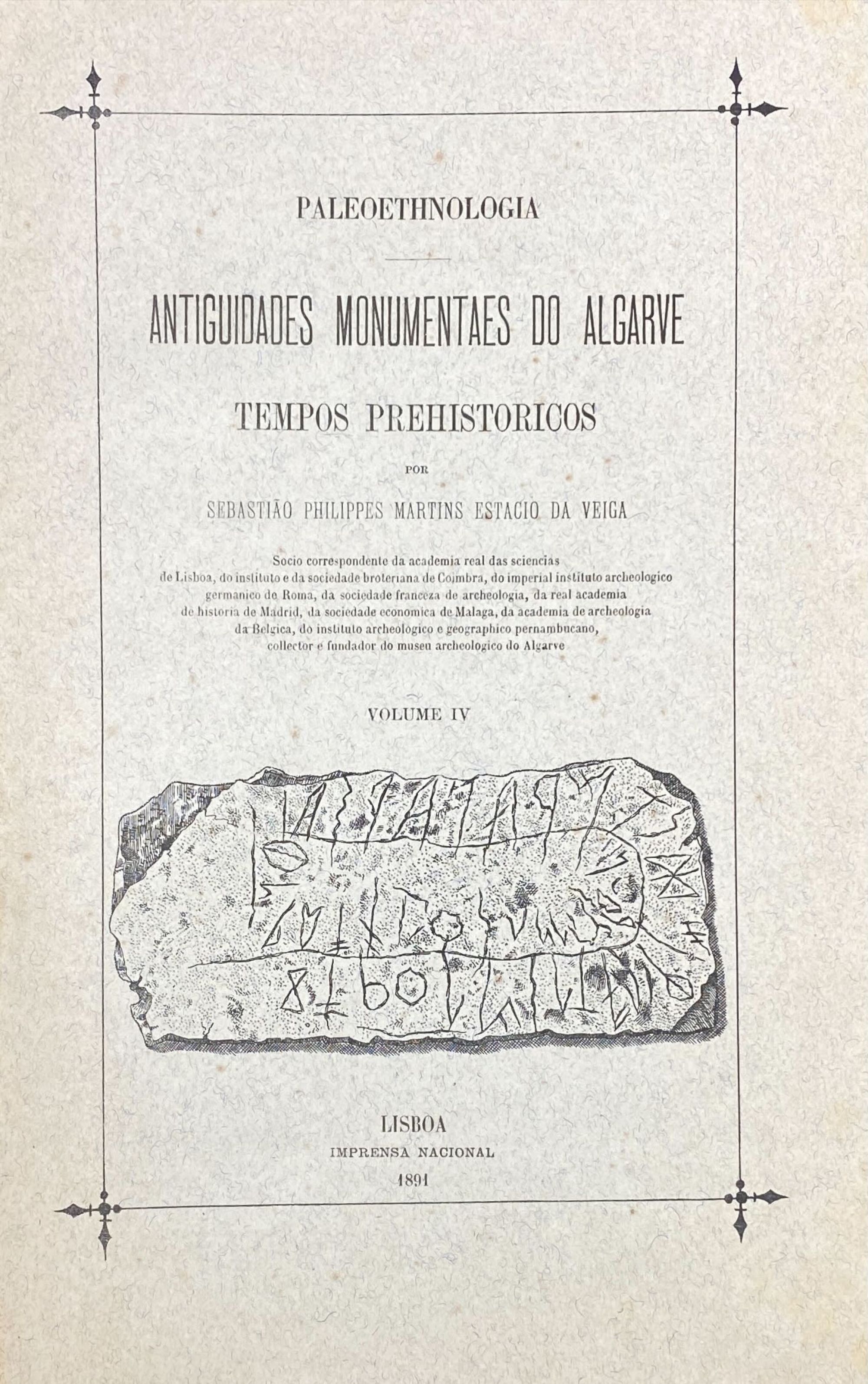 VEIGA, Sebastião Philippes Martins Estacio da. - PALEOETHNOLOGIA. ANTIGUIDADES MONUMENTAIS DO ALGARVE. Tempos prehistoricos. Volume I (ao IV).