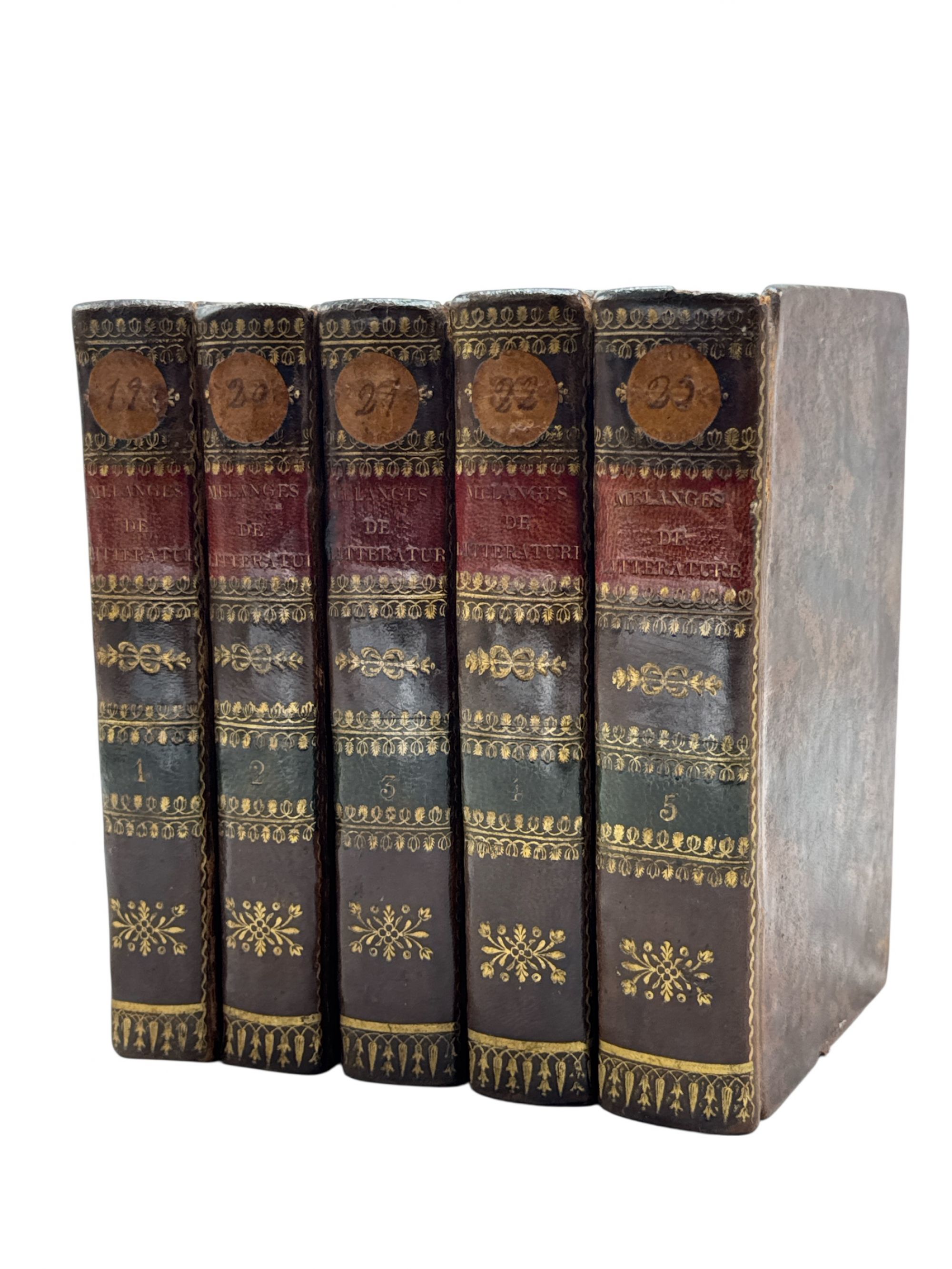 ALEMBERT, Jean le Rond de. MÉLANGES DE LITTERATURE, D'HISTOIRE, ET DE PHILOSOPHIE. Tome I (ao V). Amsterdam. Zacharie Chatelain & Fils. 1767. 5 Vols. In-8º Encs.