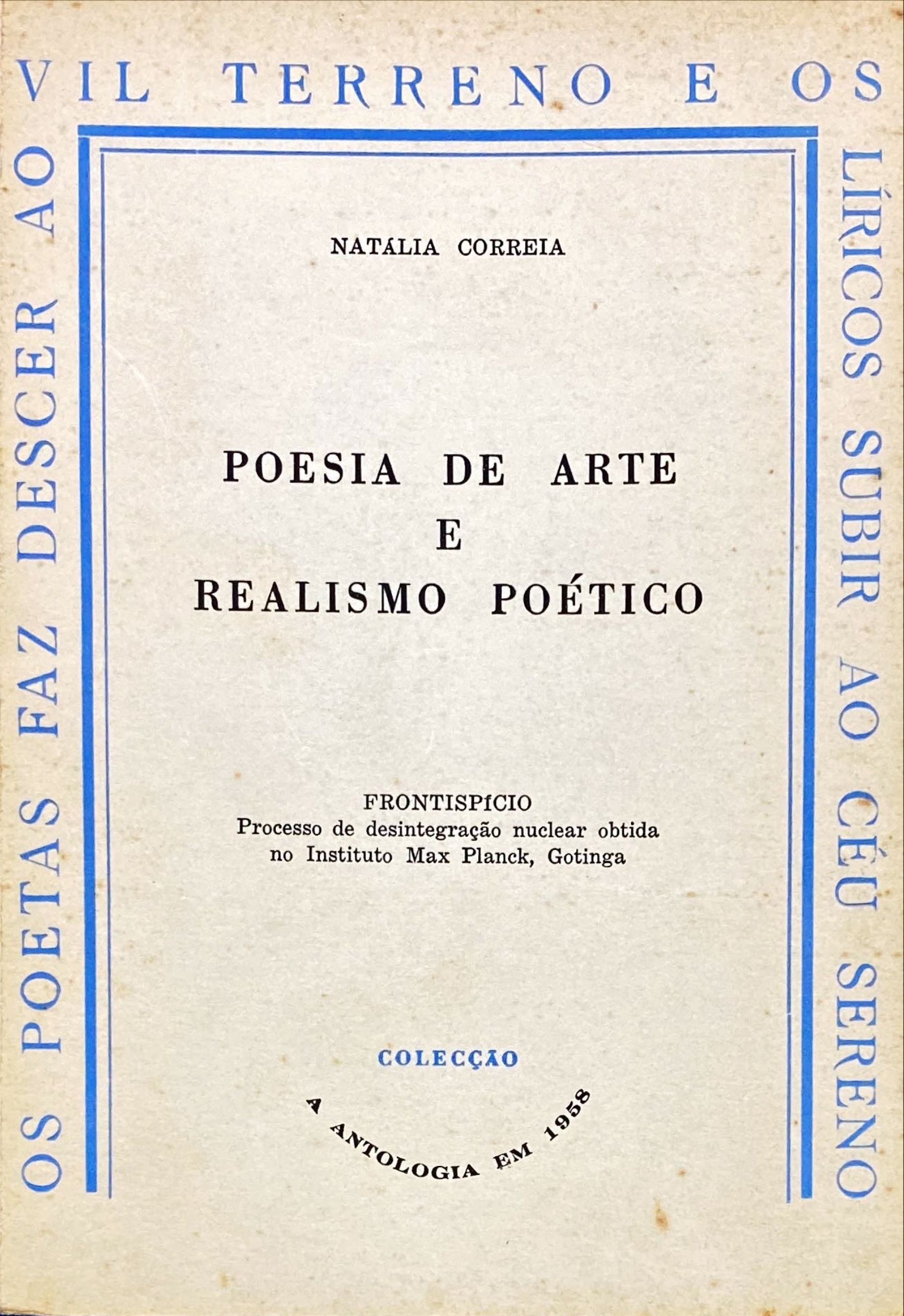CORREIA, Natália. - POESIA DE ARTE E REALISMO POÉTICO.