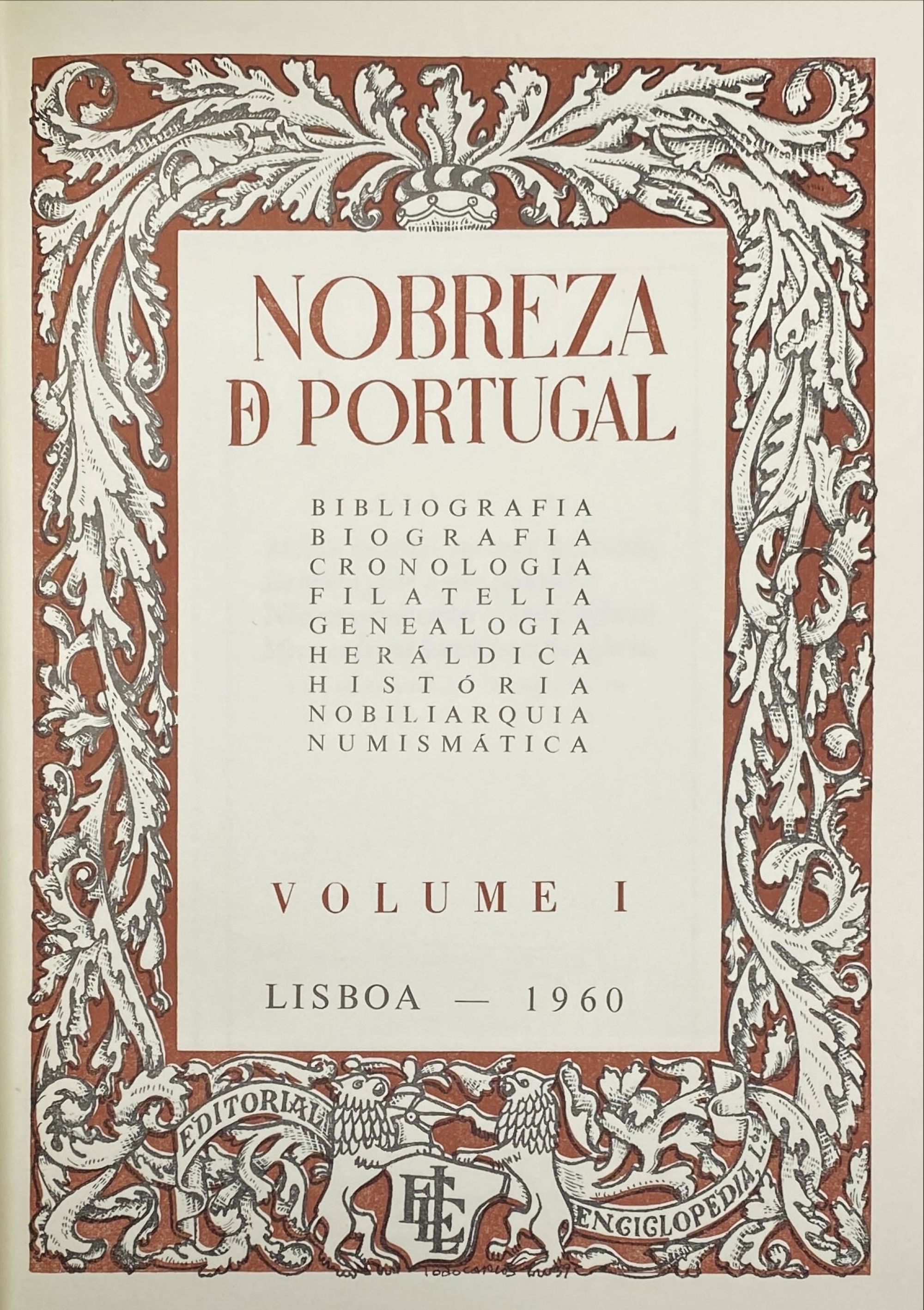 NOBREZA DE PORTUGAL. Bibliografia. Biografia. Cronologia. Filatelia. Genealogia. Heráldica. História. Nobiliarquia. Numismática. Volume I (ao Volume III). Juntamos: ARMORIAL LUSITANO. Genealogia e Heráldica. Lisboa. Editorial Enciclopédia. 1960 (e 1961). 4 Vols. In-4º Encs.