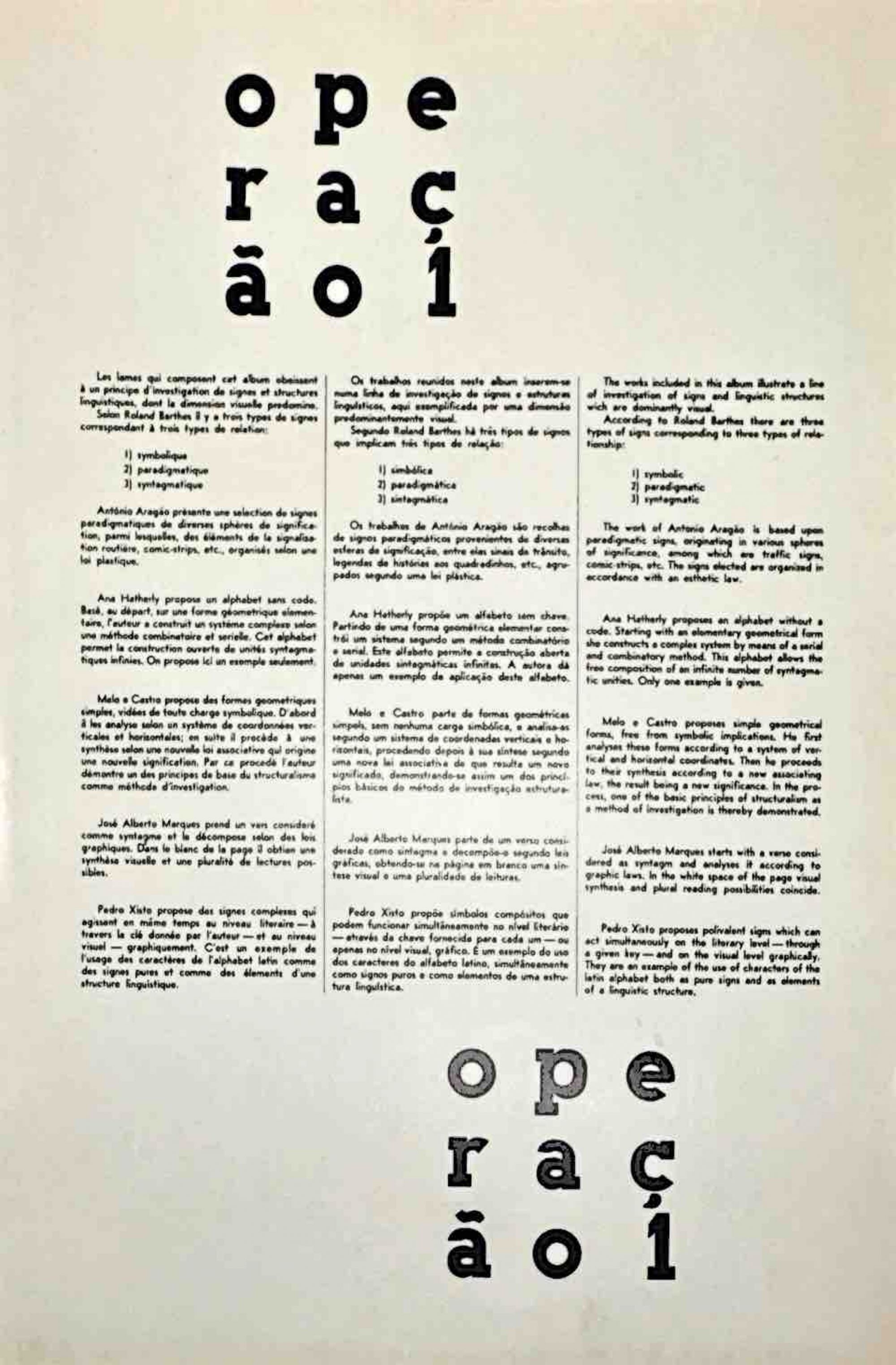 OPERAÇÃO 1. Organizador: E. M. Melo e Castro.