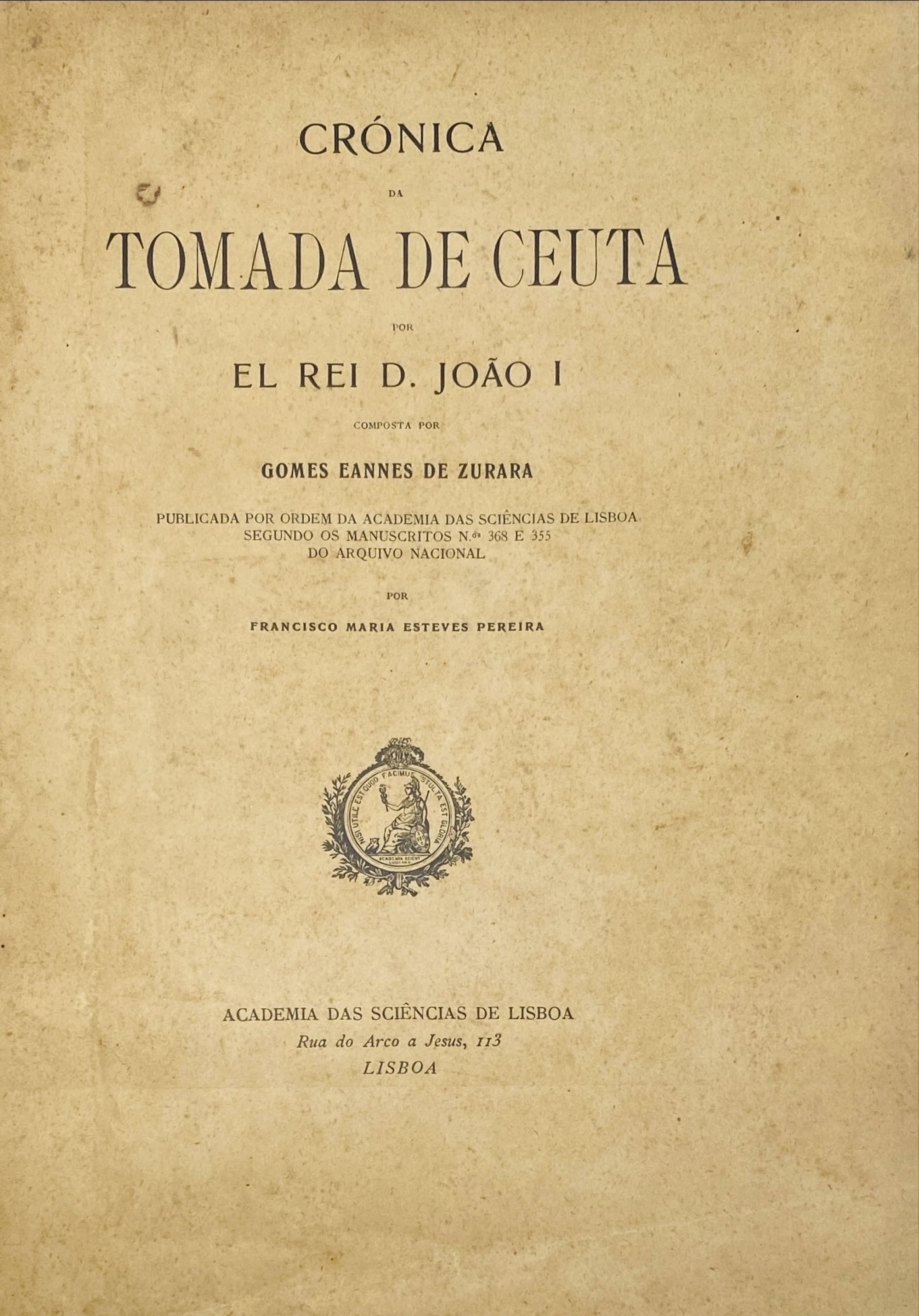 ZURARA, Gomes Eannes de. - CRÓNICA DA TOMADA DE CEUTA POR EL REI D. JOÃO I. Publicada por ordem da Academia das Sciências de Lisboa, segundo os manuscritos Nºs- 368 e 355 do Arquivo Nacional por Francisco Maria Esteves Pereira. Lisboa. Academia das Sciências. 1915. In-Fólio de CXV, 34l, [1] págs. Enc.