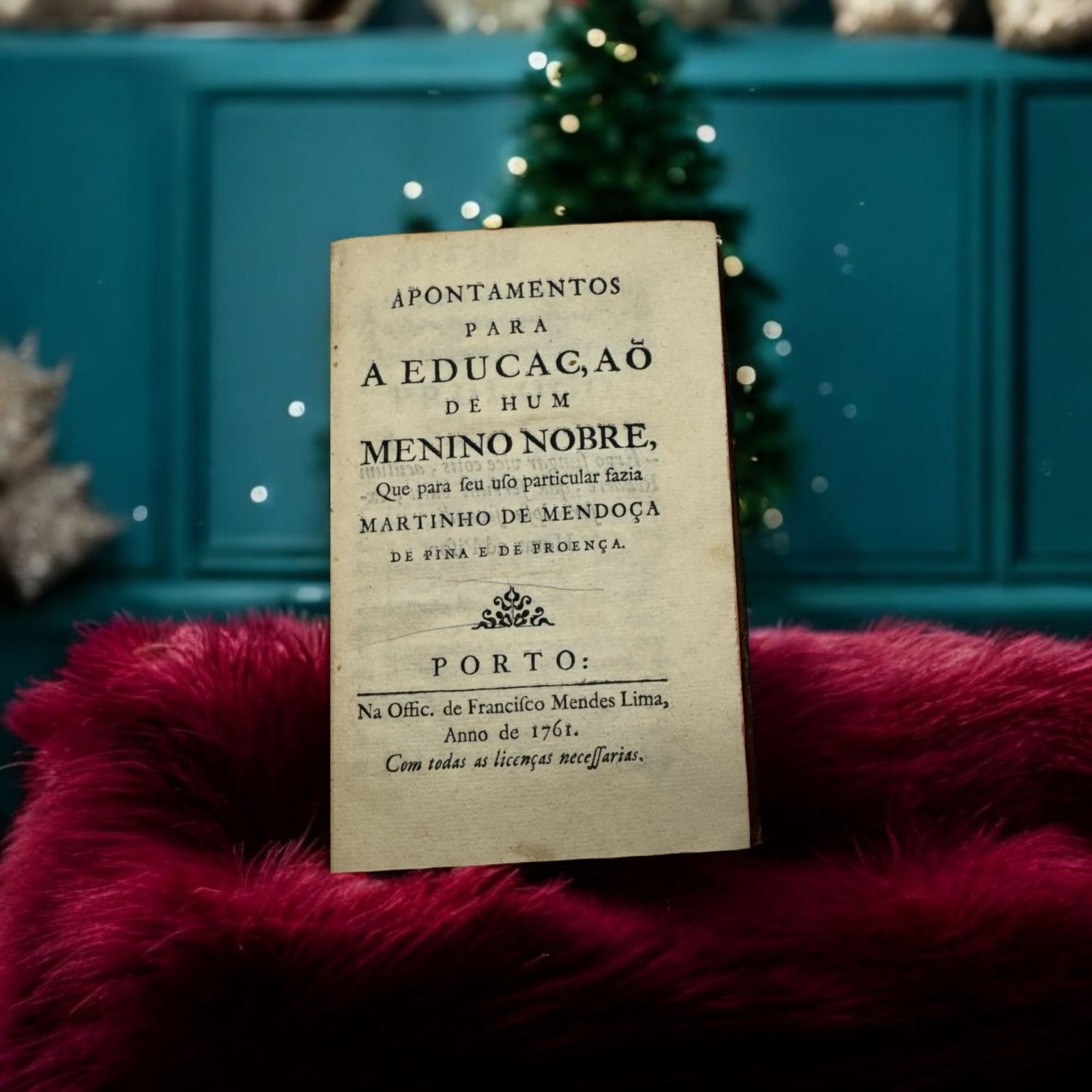 PROENÇA, Martinho de Mendoça de Pina e de. - APONTAMENTOS PARA A EDUCAÇAÕ DE HUM MENINO NOBRE, Que para seu uso particular fazia. Porto. Na Offic. de Francisco Mendes Lima. 1761. In-8º de [22], 246 págs. Enc.